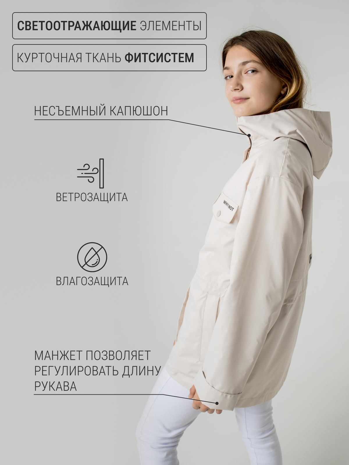 Ветровка EMSON, размер 140, молочный