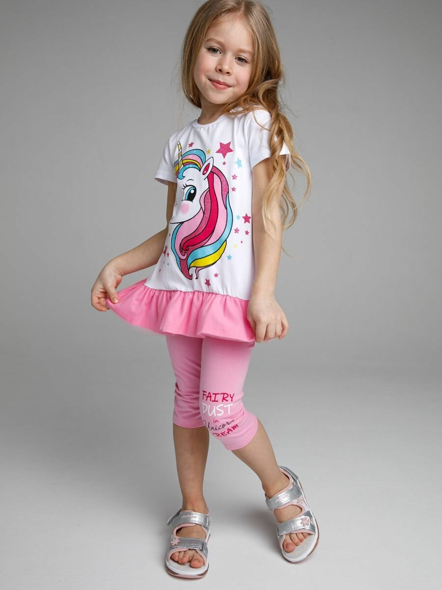 Купить Комплект одежды playToday Весна-лето 2025, размер 116, белый/розовый