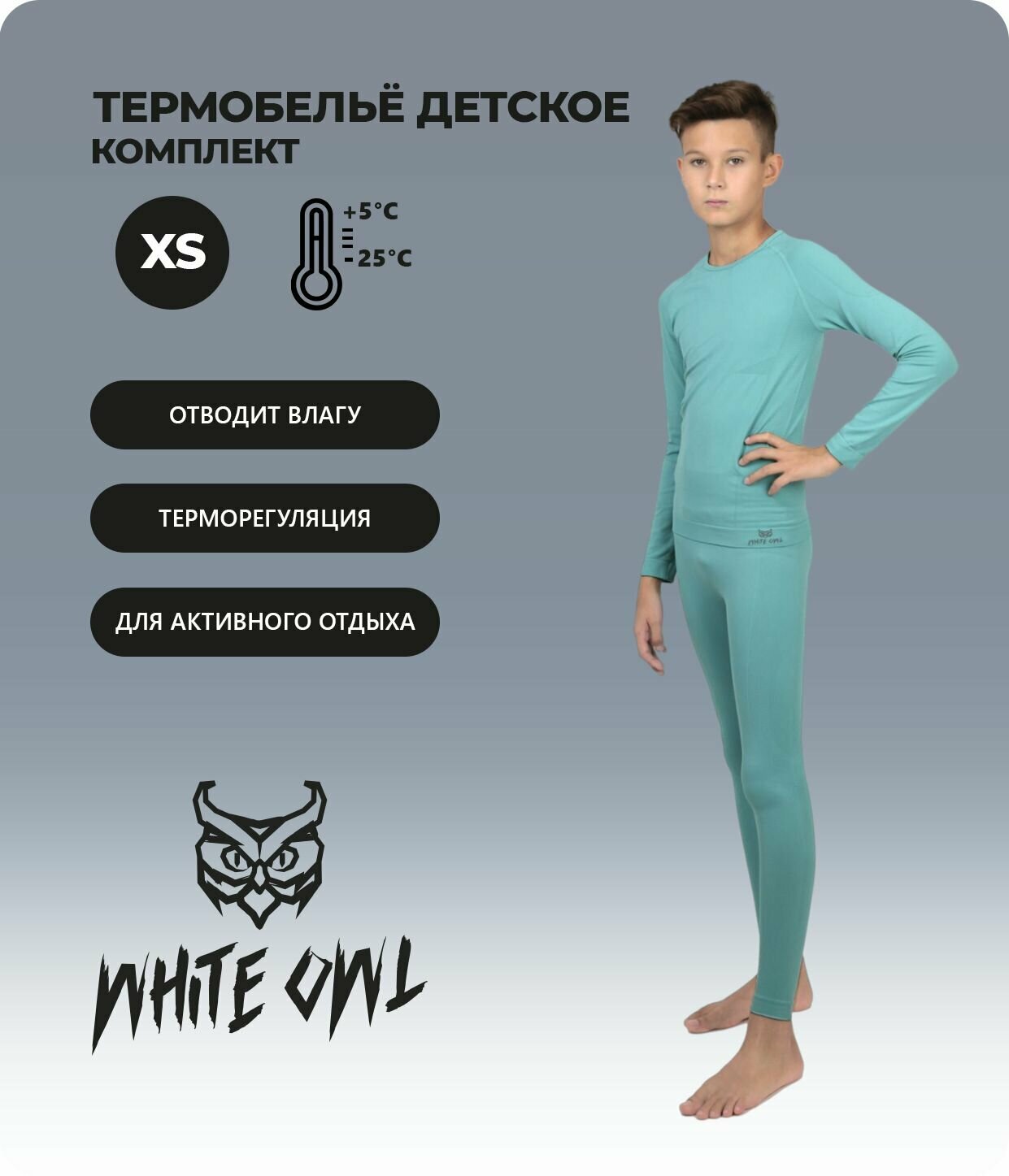 Комплект термобелья WHITE OWL Осень-зима 2023, размер XS, голубой интересное:
