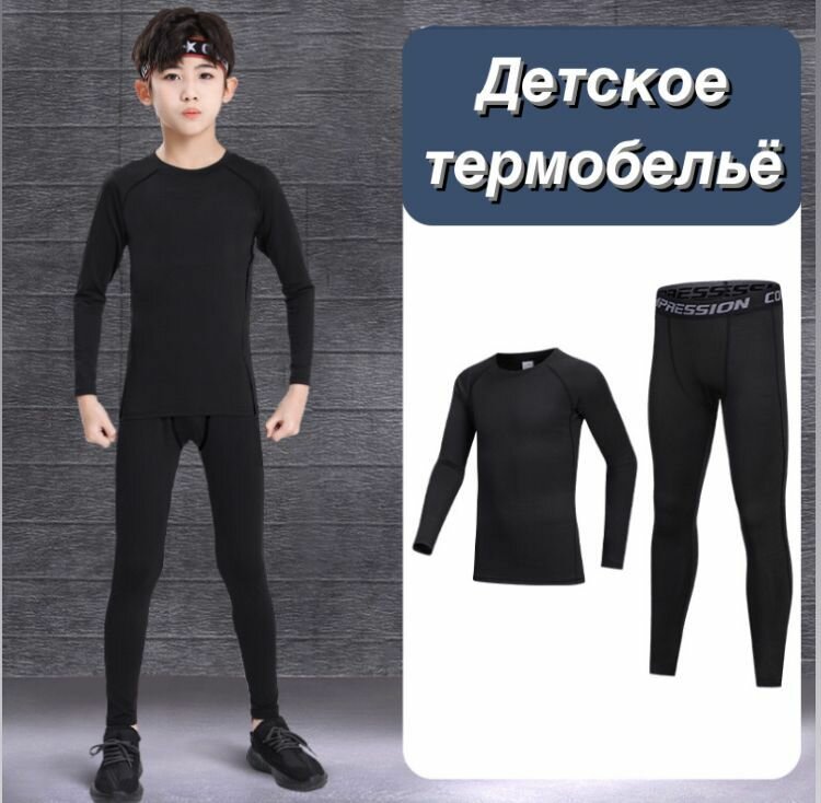 Комплект термобелья Осень-зима 2023, размер 28, черный