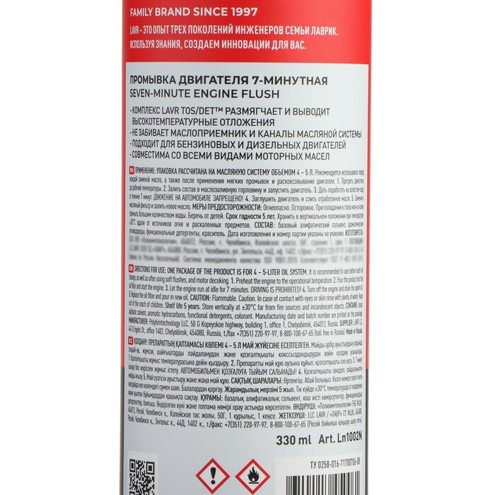 LAVR / ln1002l / Промывка двигателя 7-минутная (для двигателей с турбонаддувом) LAVR Seven minutes motor flush 450мл