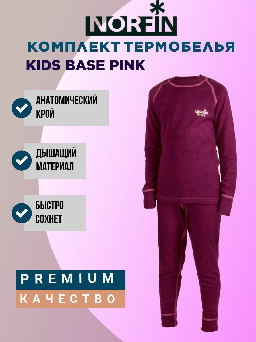 Комплект термобелья NORFIN Осень-зима 2024, размер 116-122, темно-розовый интересное: