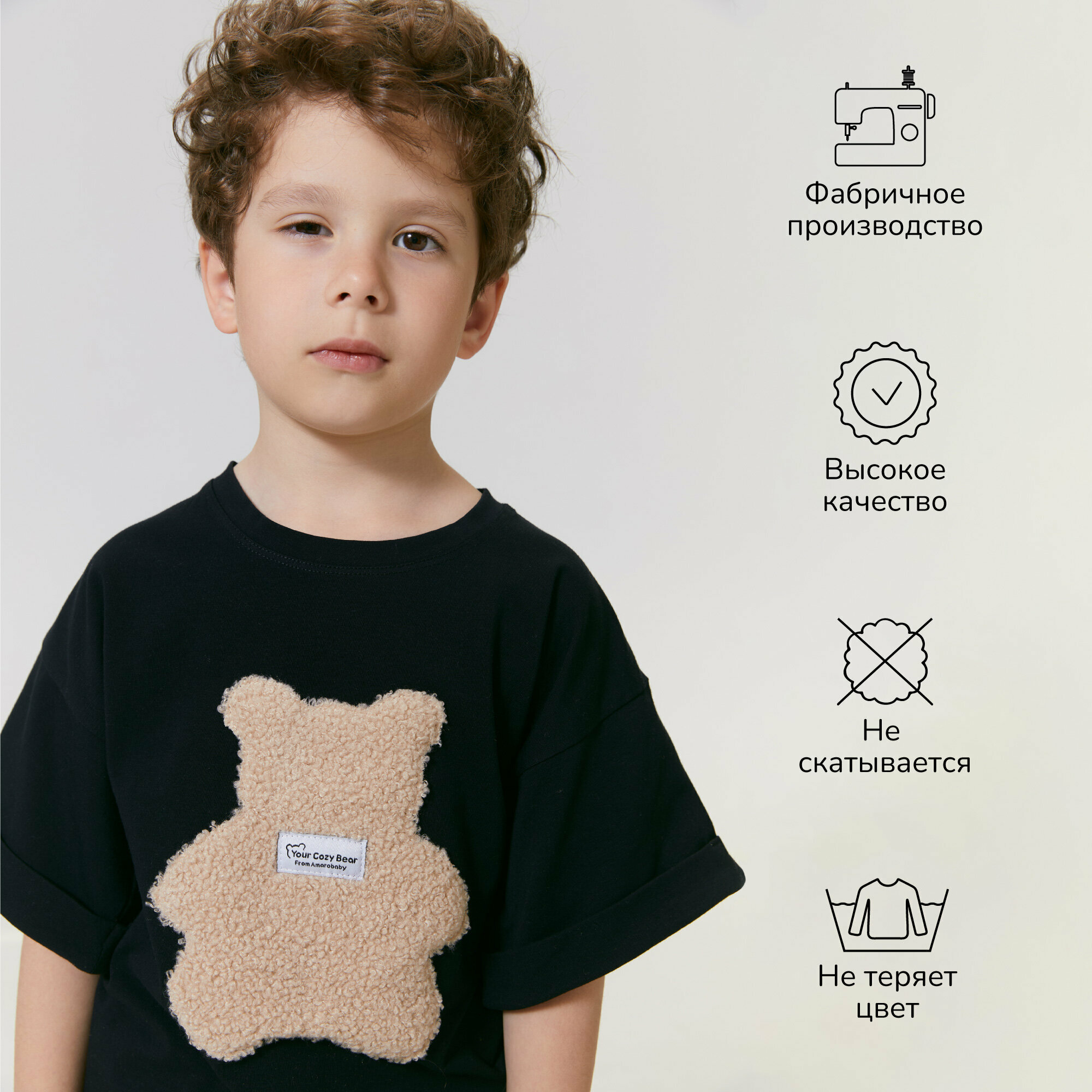 Футболка Amarobaby Bear, размер 122, черный интересное: