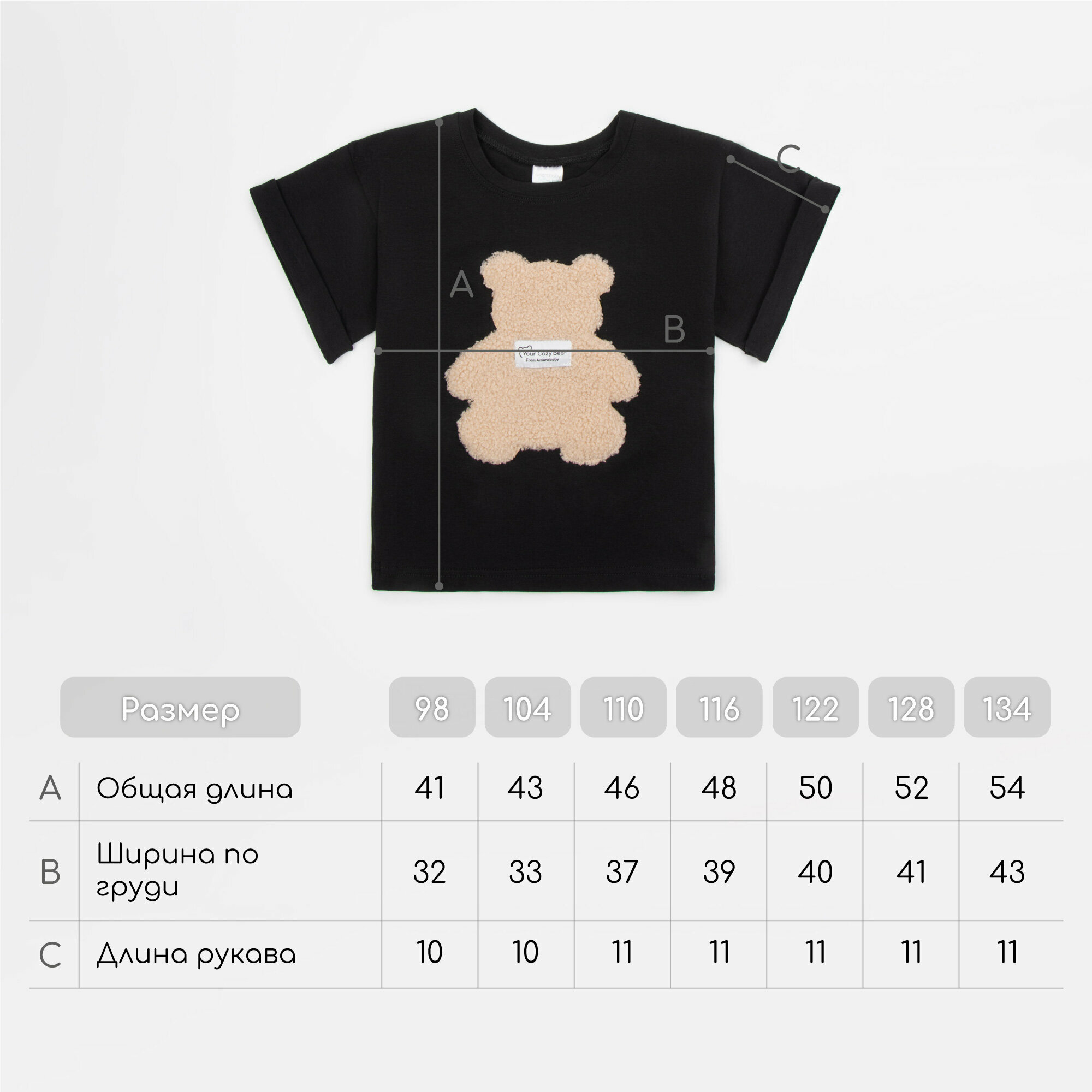 Футболка Amarobaby Bear, размер 128, черный