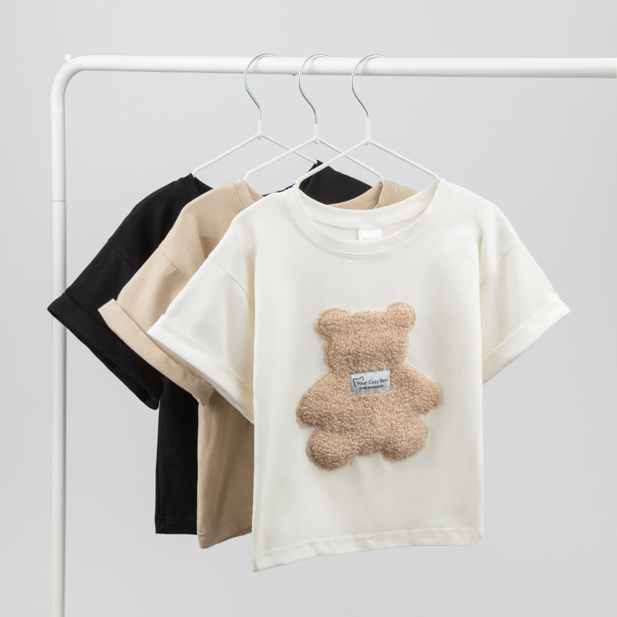 Футболка Amarobaby Bear, размер 98, бежевый