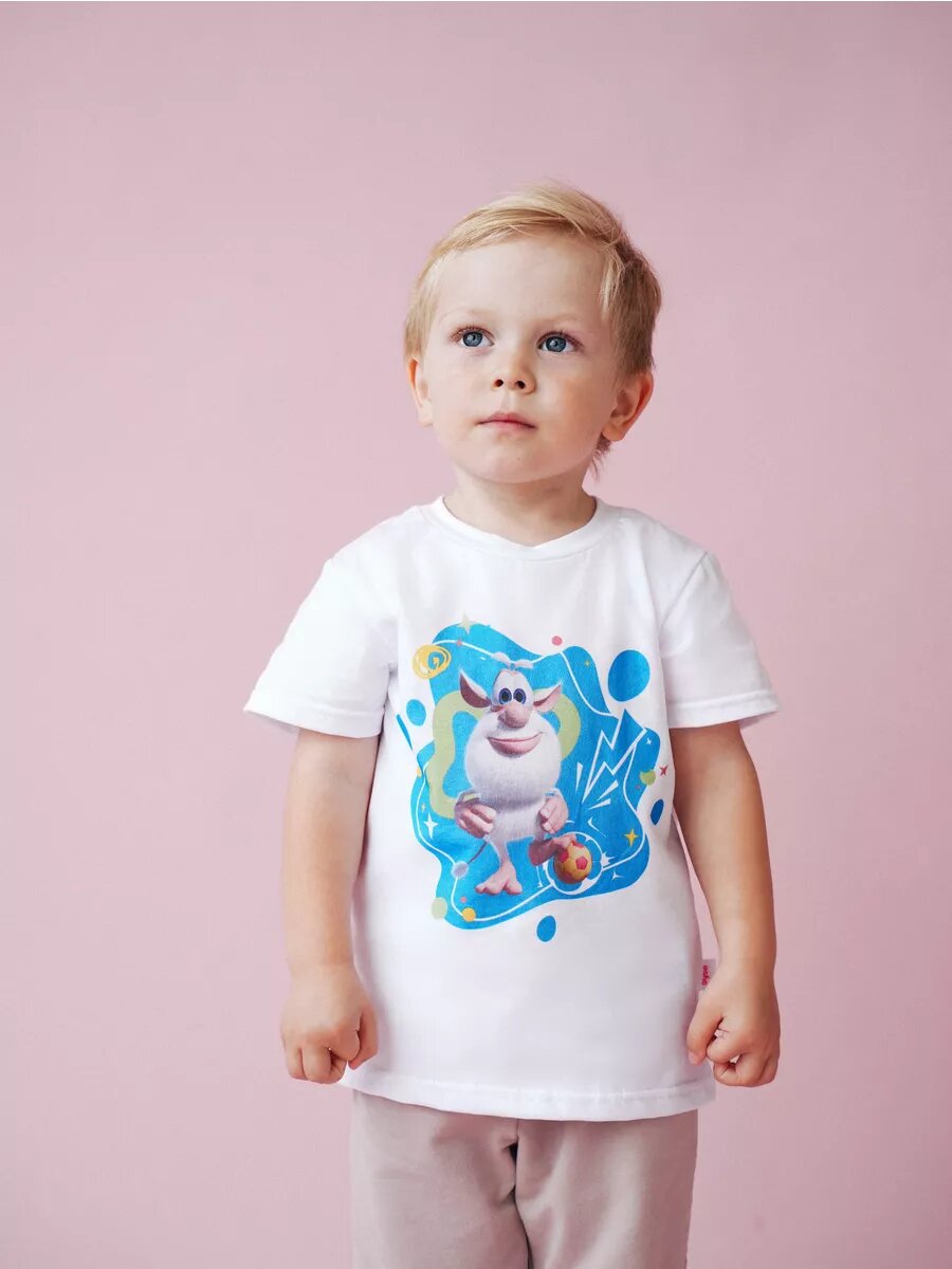 Футболка МУЛЬТИКИДЗ, размер 30, белый/голубой