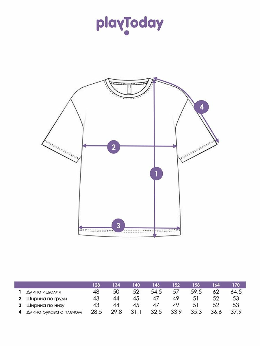 Футболка playToday Весна-лето 2025, размер 128, голубой, черный, розовый интересное: