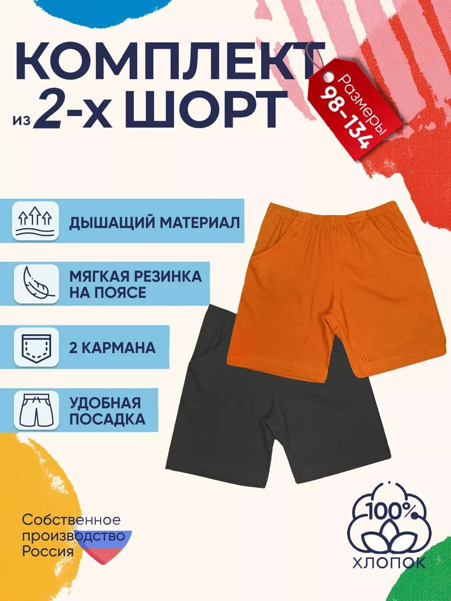 Купить Шорты Детрик, размер 98, черный/оранжевый