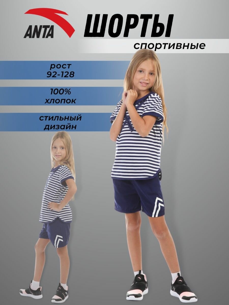 Шорты спортивные ANTA, размер 101, синий/белый интересное: