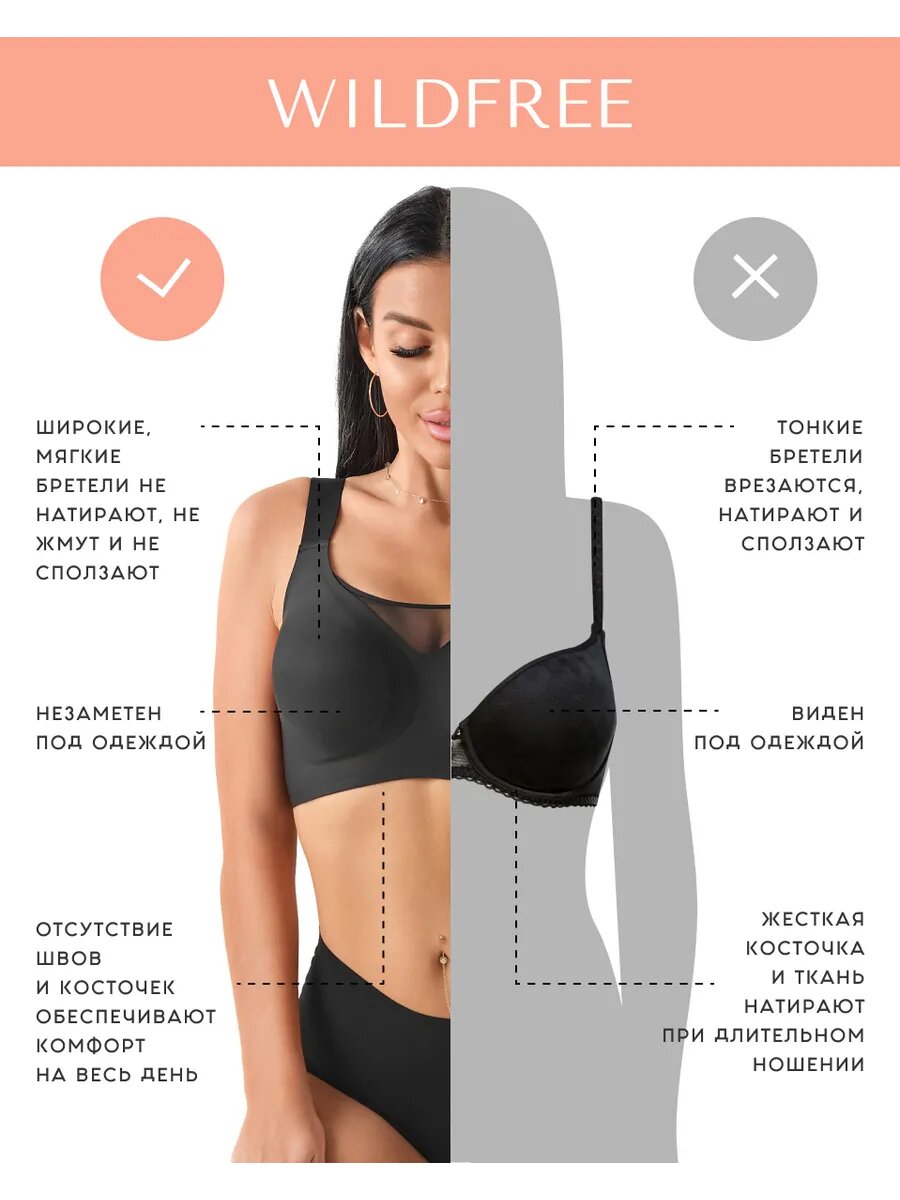 СохранитьБюстгальтер WILDFREE Нижнее белье женское, размер XL, черный интересное:
