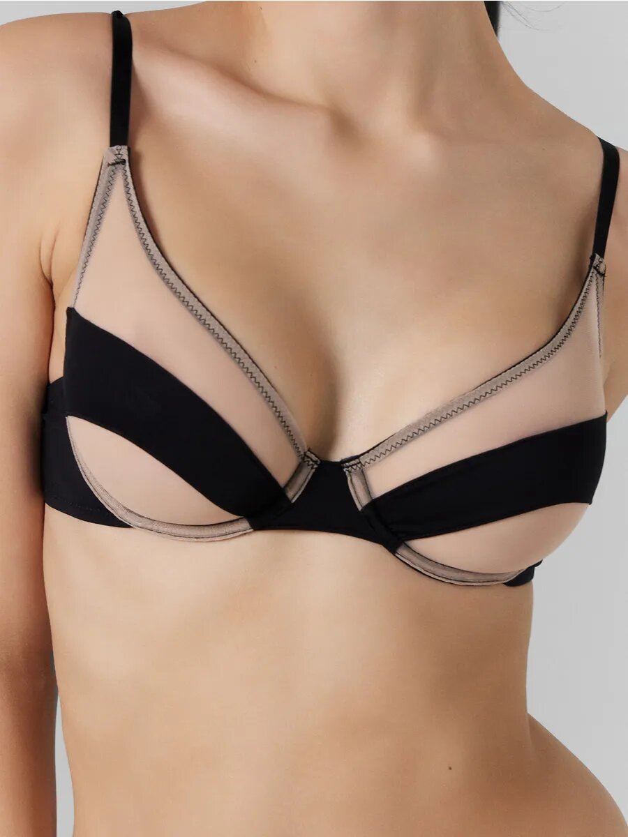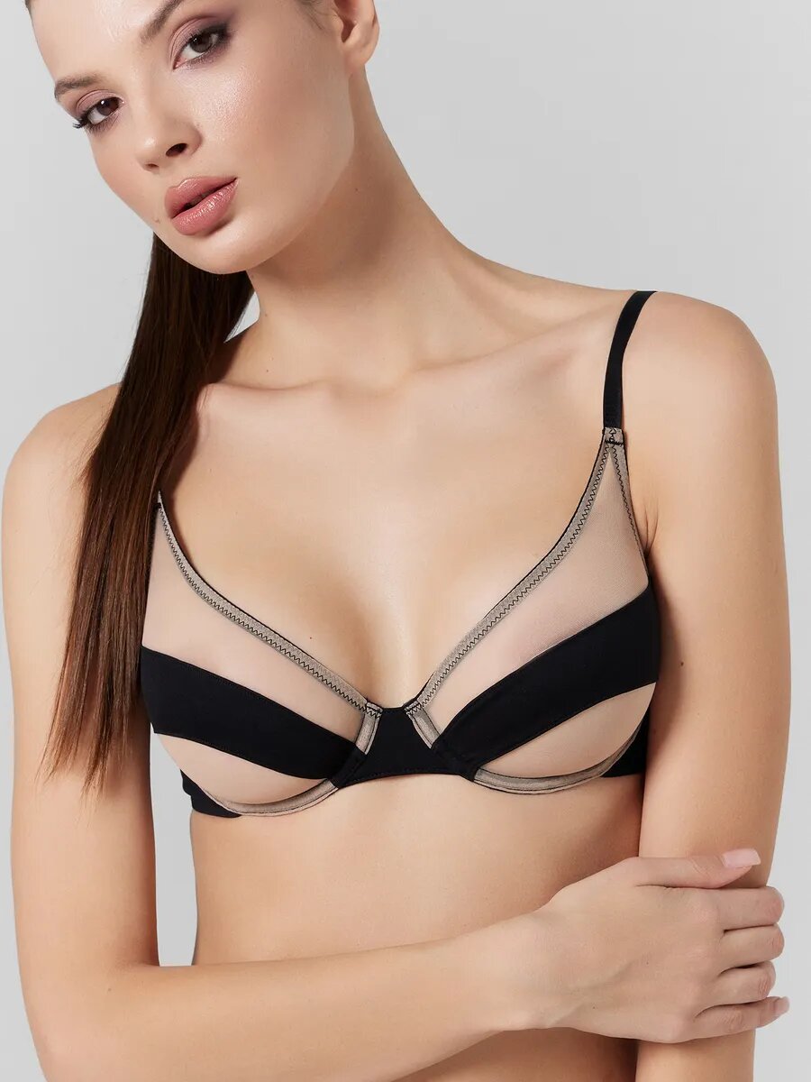 Novika Бюстгальтер Angelina на косточках с принтованным кружевом (70F / черный с бежевым)