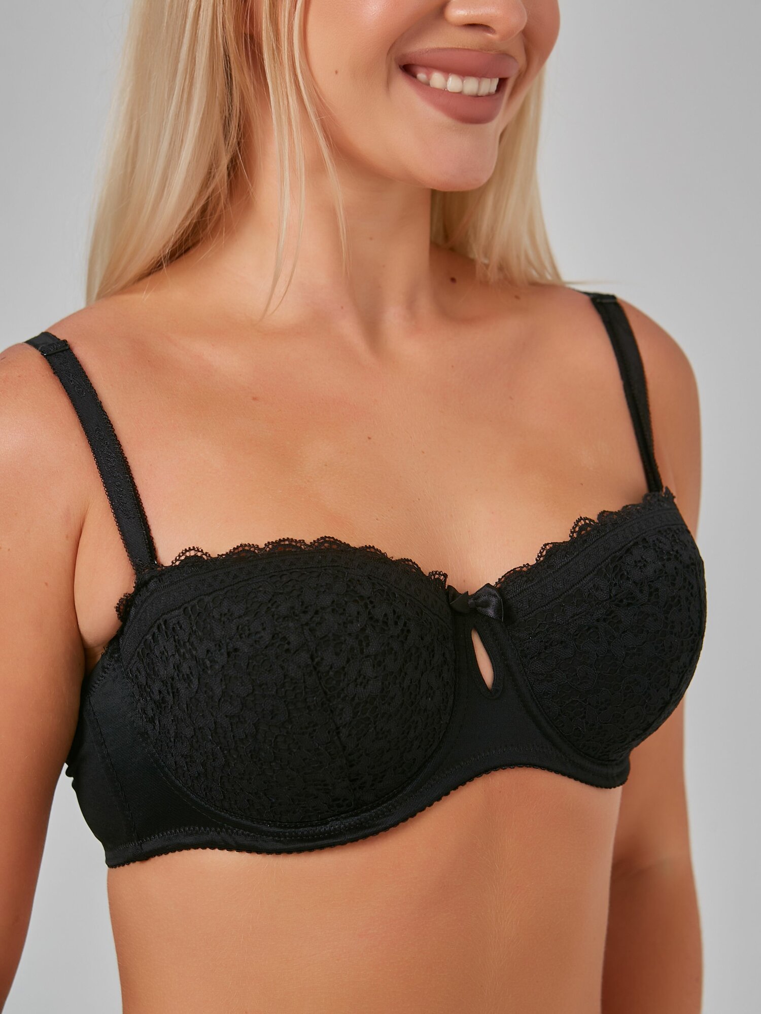 Novika Бюстгальтер Angelina на косточках с принтованным кружевом (70F / черный с бежевым)