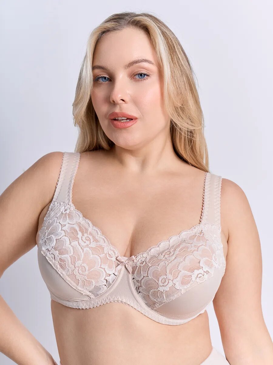 Novika Бюстгальтер Angelina на косточках с принтованным кружевом (70F / черный с бежевым)