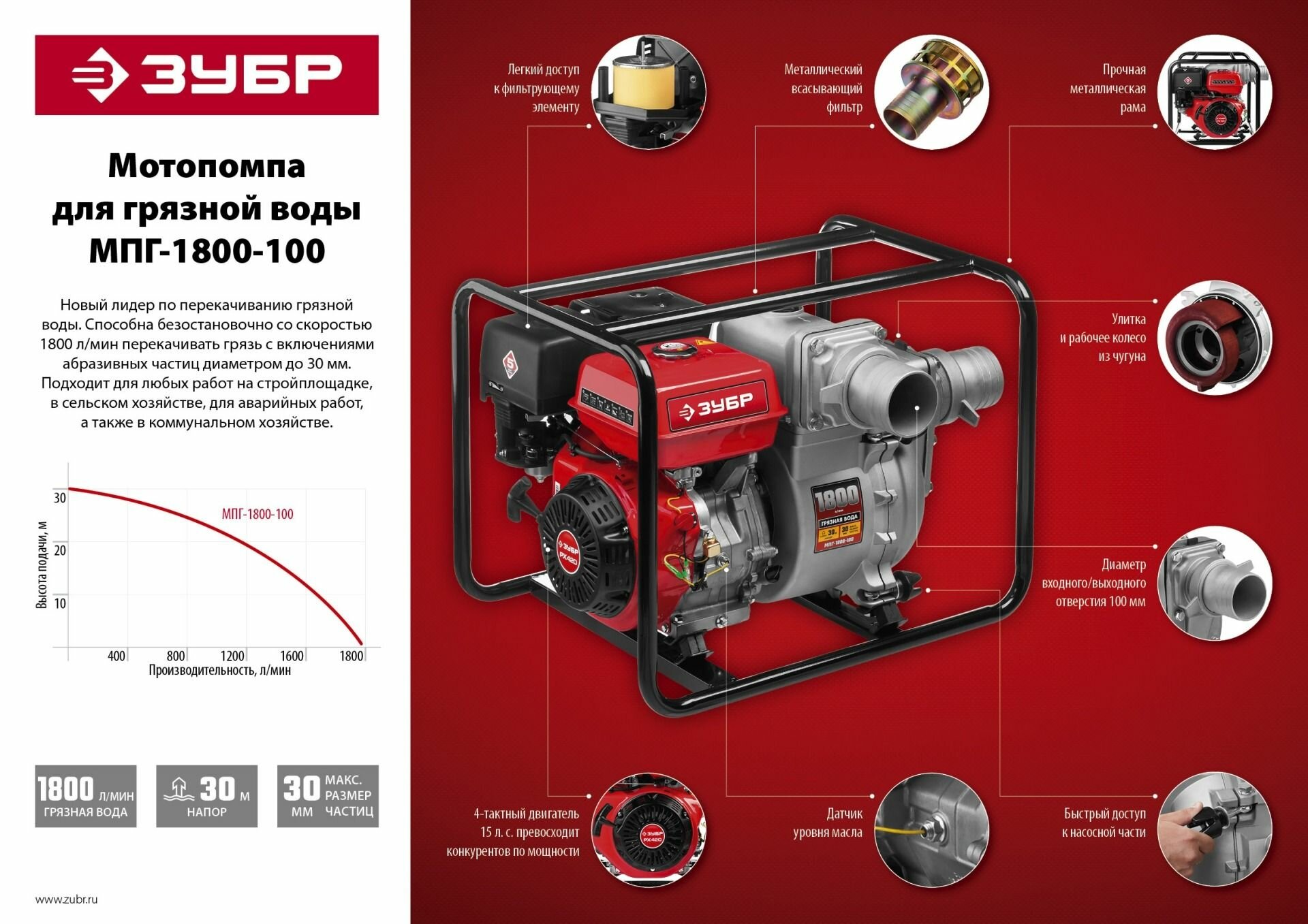 СохранитьМотопомпа бензиновая Зубр МПГ-1300-80 интересное: