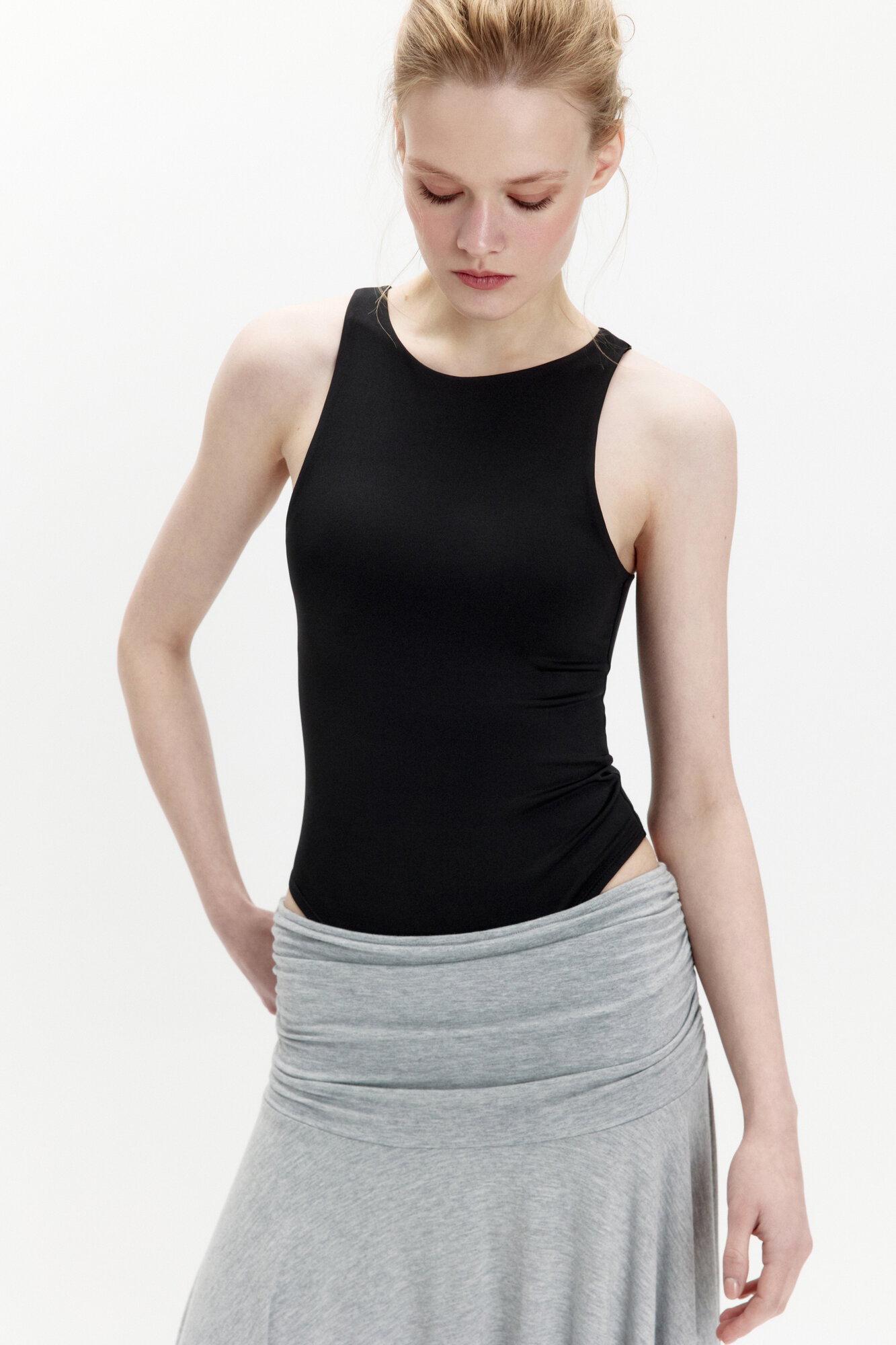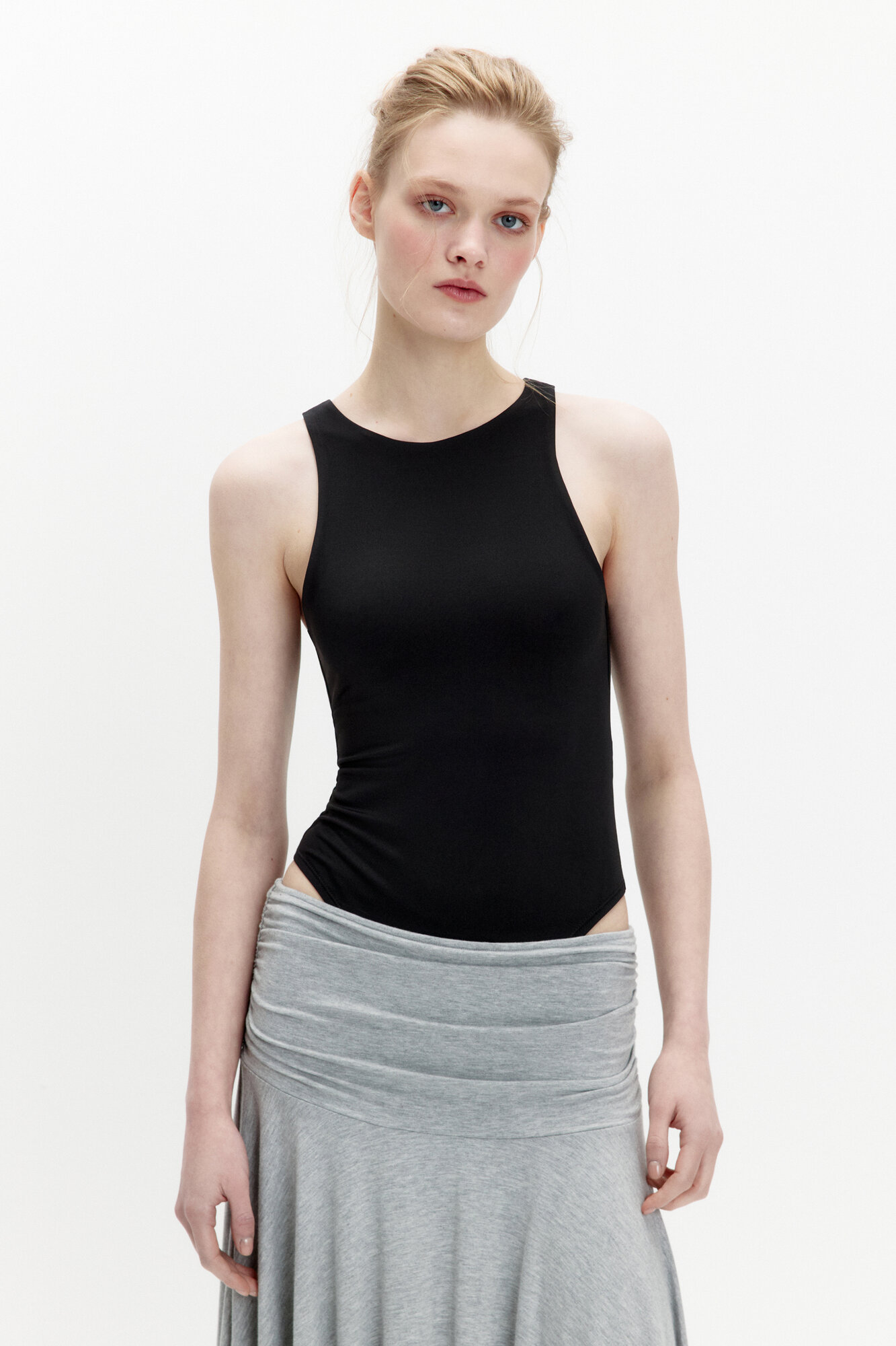 Боди с высоким вырезом бедра и длинным рукавом твое, арт. 102862, черный, S
