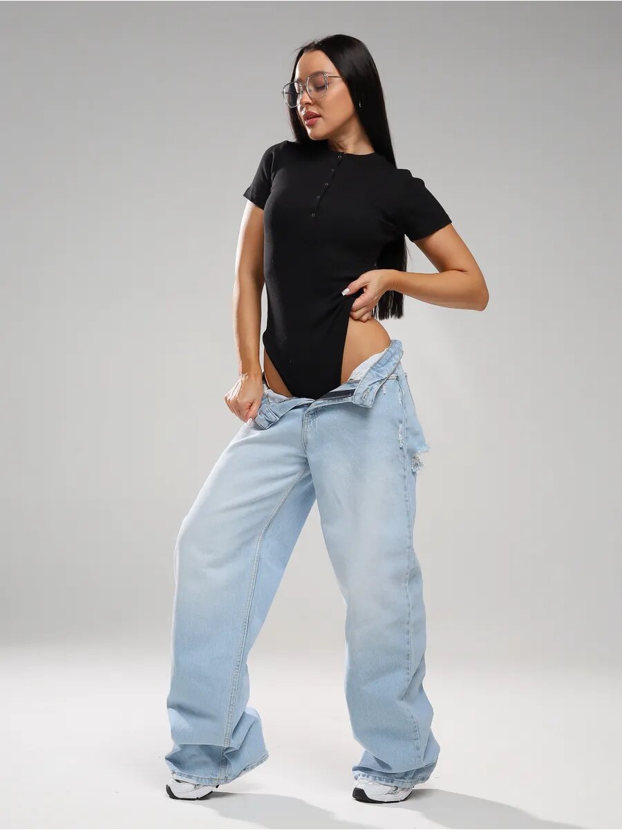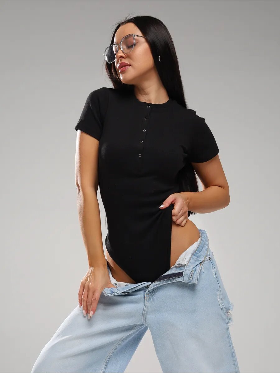 Боди с высоким вырезом бедра и длинным рукавом твое, арт. 102862, черный, S