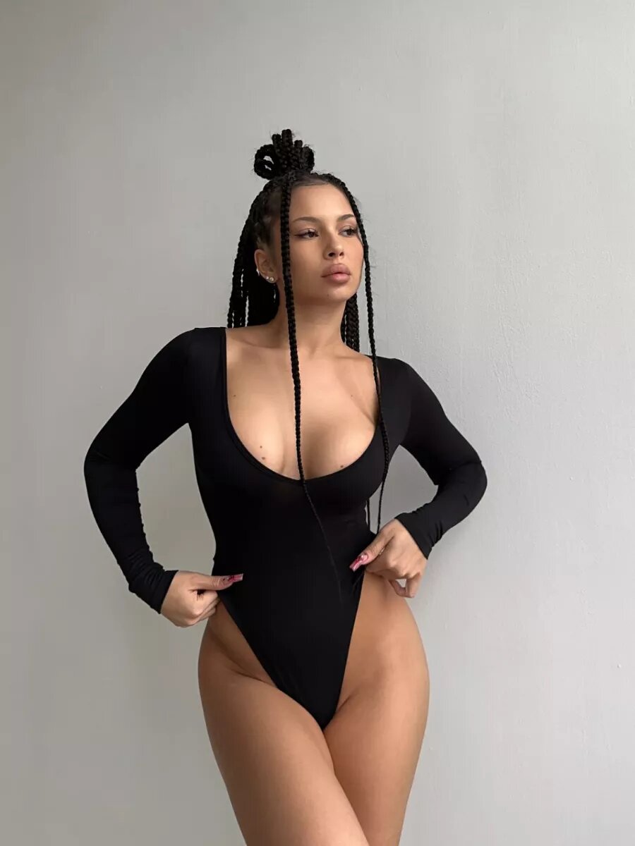 Боди с высоким вырезом бедра и длинным рукавом твое, арт. 102862, черный, S