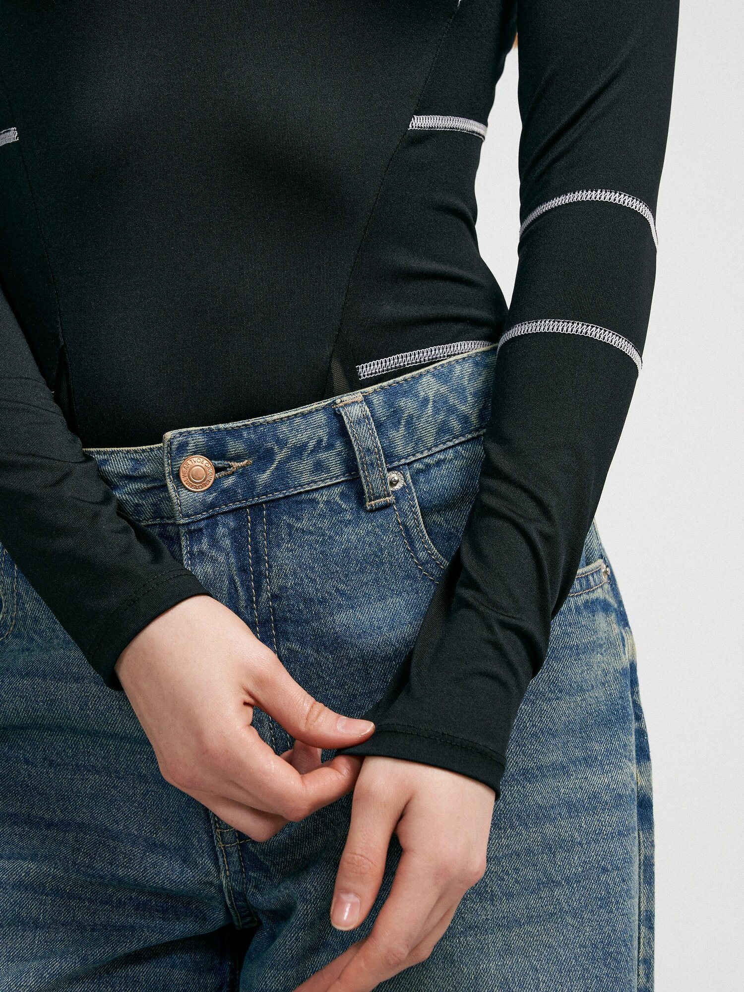 Боди с высоким вырезом бедра и длинным рукавом твое, арт. 102862, черный, S