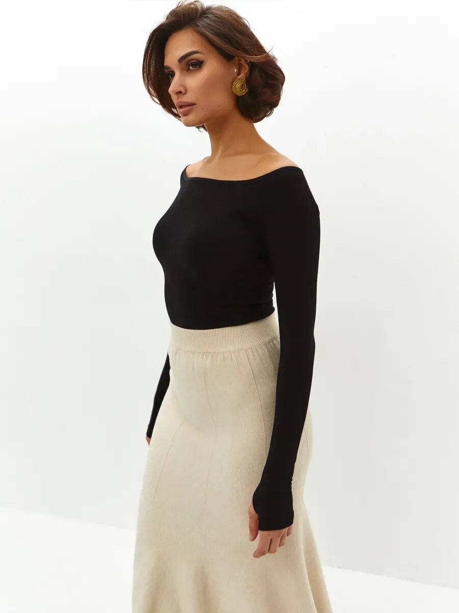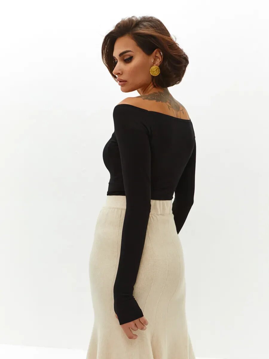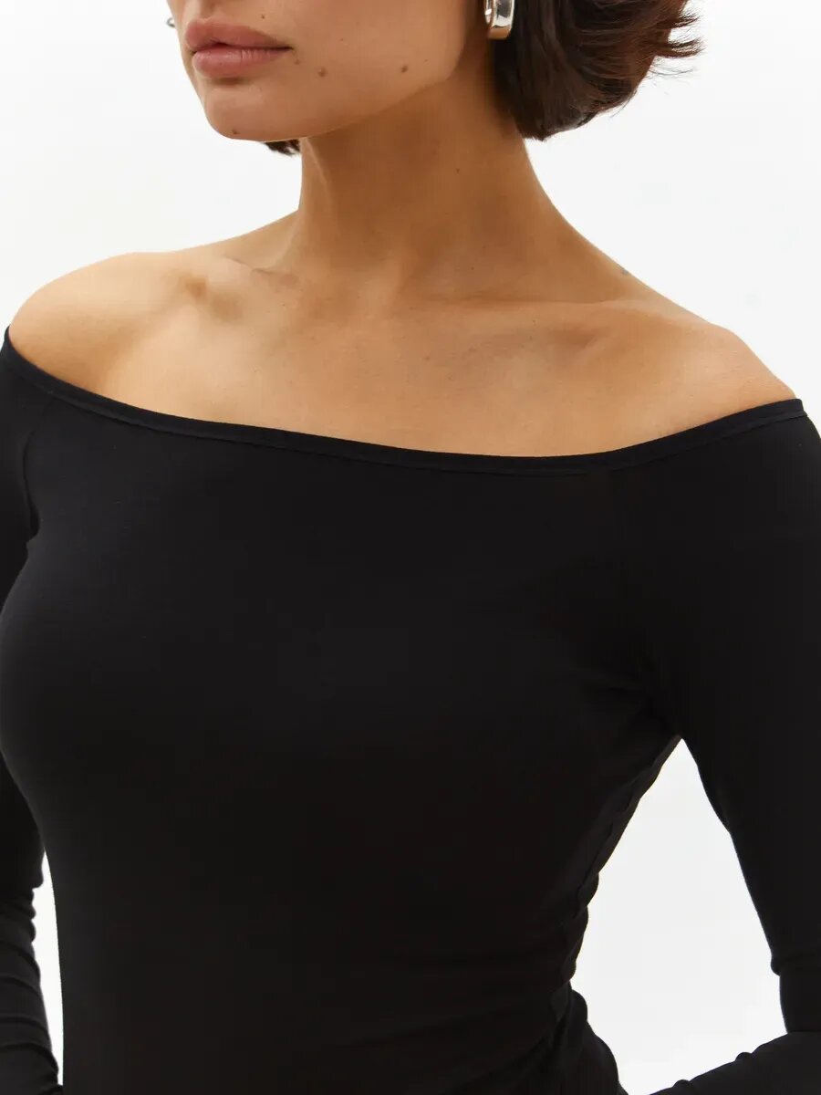 Боди с высоким вырезом бедра и длинным рукавом твое, арт. 102862, черный, S