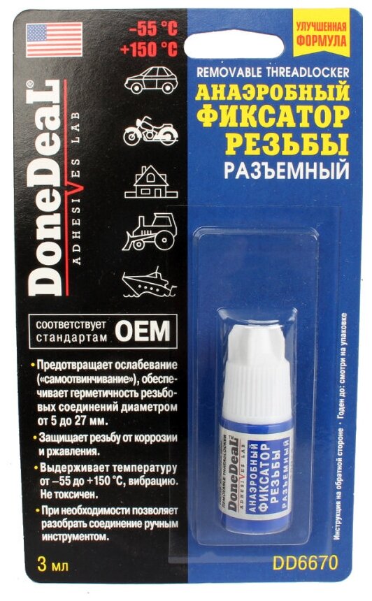 DONE DEAL DD6670 DD6670_=HG !3g\ Анаэробный фиксатор резьбы разъемный. Герметезирует резьбовые соединения