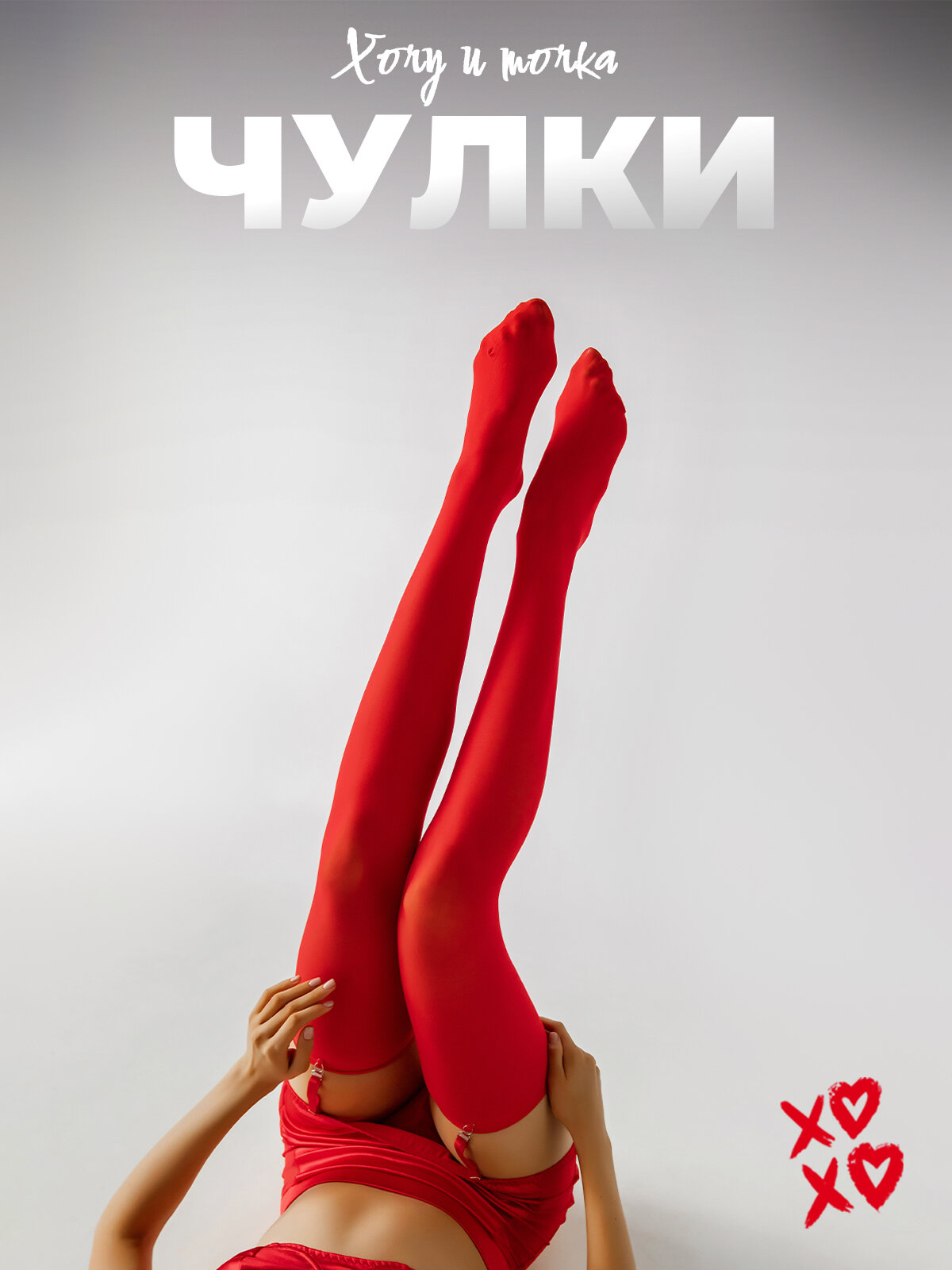 Чулки ХОЧУ И ТОЧКА, 100 den, 2 шт., размер one size, красный интересное: