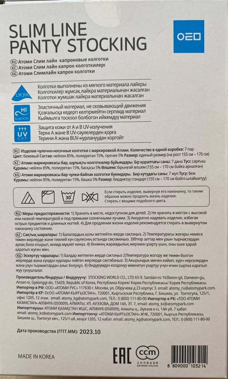 Колготки atomy slim line, размер 44/42/46/one size/48, бежевый интересное: