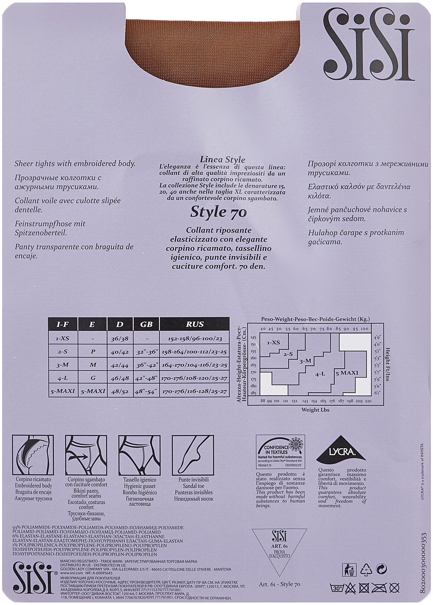 Колготки Sisi STYLE 70 den, 70 den, размер 3, nero/черный