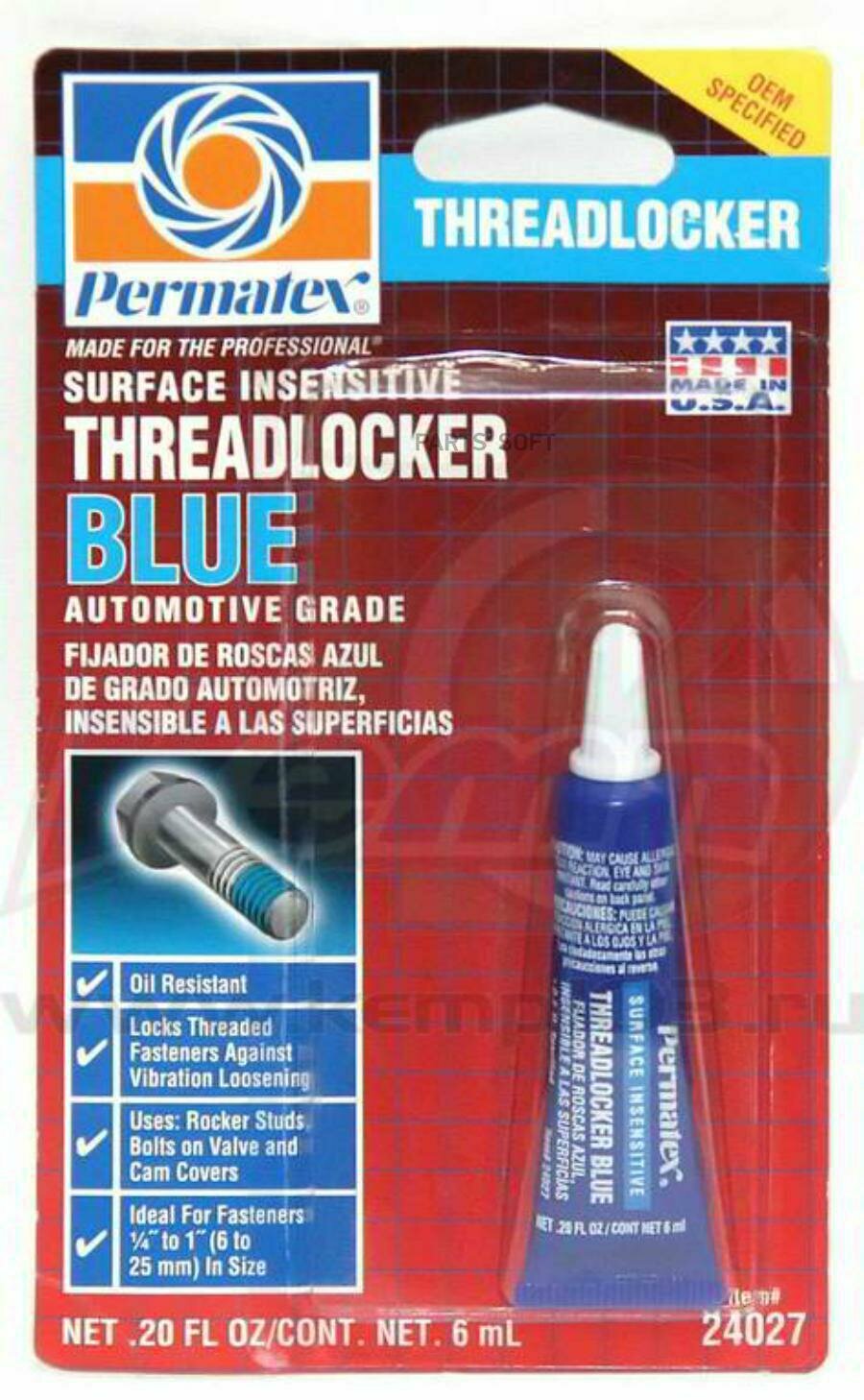 Герметик 6 мл - Permatex Фиксатор резьбы для замасленных поверхн. синий. PERMATEX 24027 | цена за 1 шт