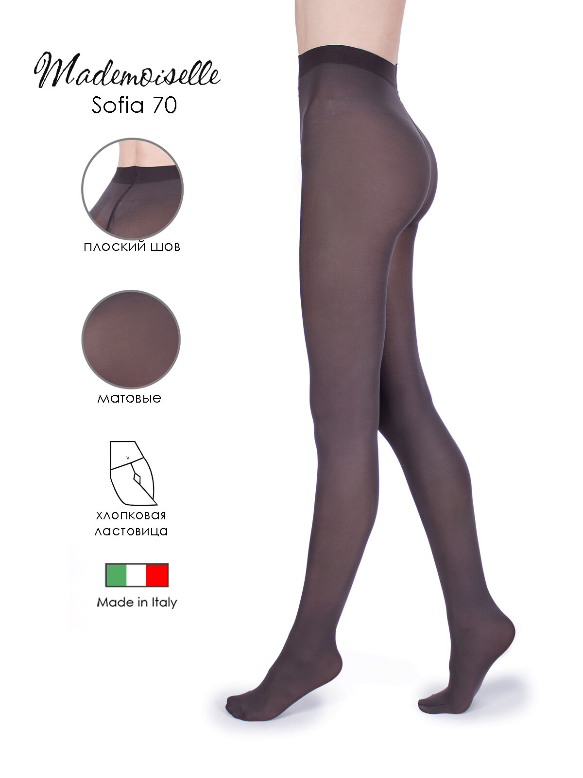 СохранитьКолготки Mademoiselle Sofia, 70 den, размер 2, графит интересное: