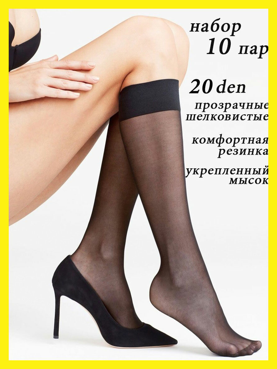 Гольфины Casandana Гольфы женские прозрачные 40 ден с лайкрой набор 10 пар, 40 den, 10 шт., размер one size, черный