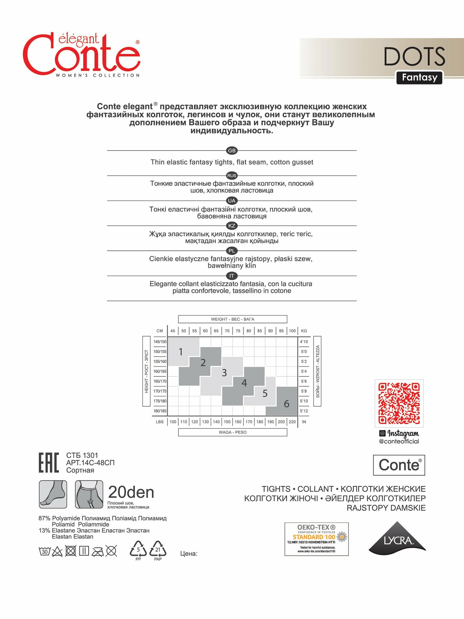 Колготки Conte elegant FANTASY DOTS, р.3, nero, 20 den, размер 3, nero интересное: