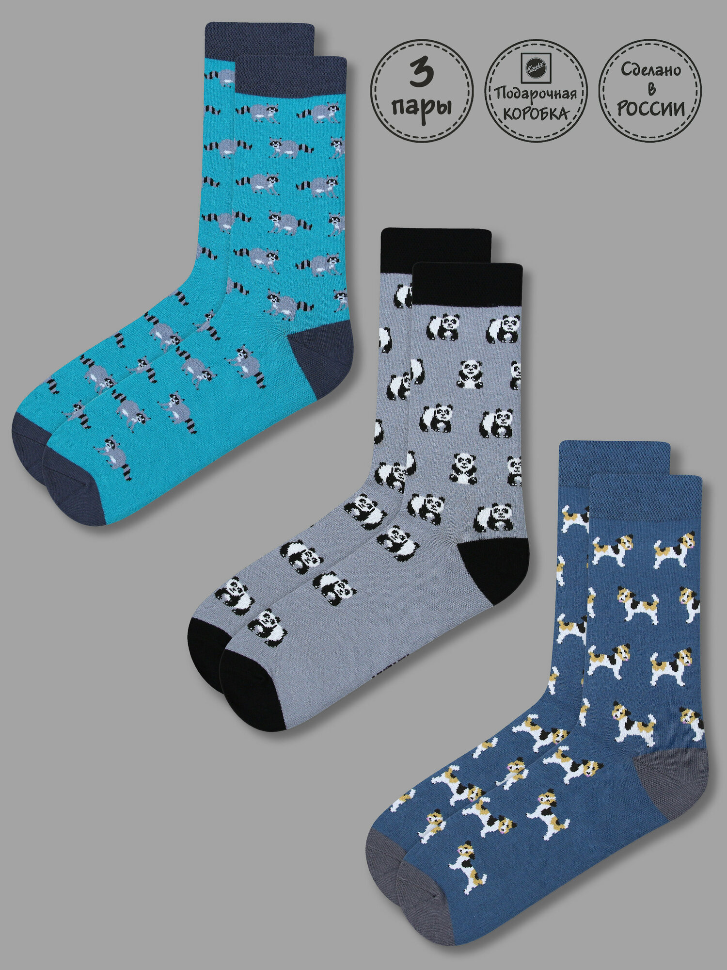 Носки Kingkit, комплект, 3 пары, размер 41-45, бирюзовый, белый, серый