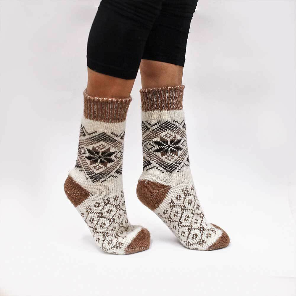 Купить Носки Русская шерсть со снежинками "Зимний день", размер 35-37, белый, коричневый