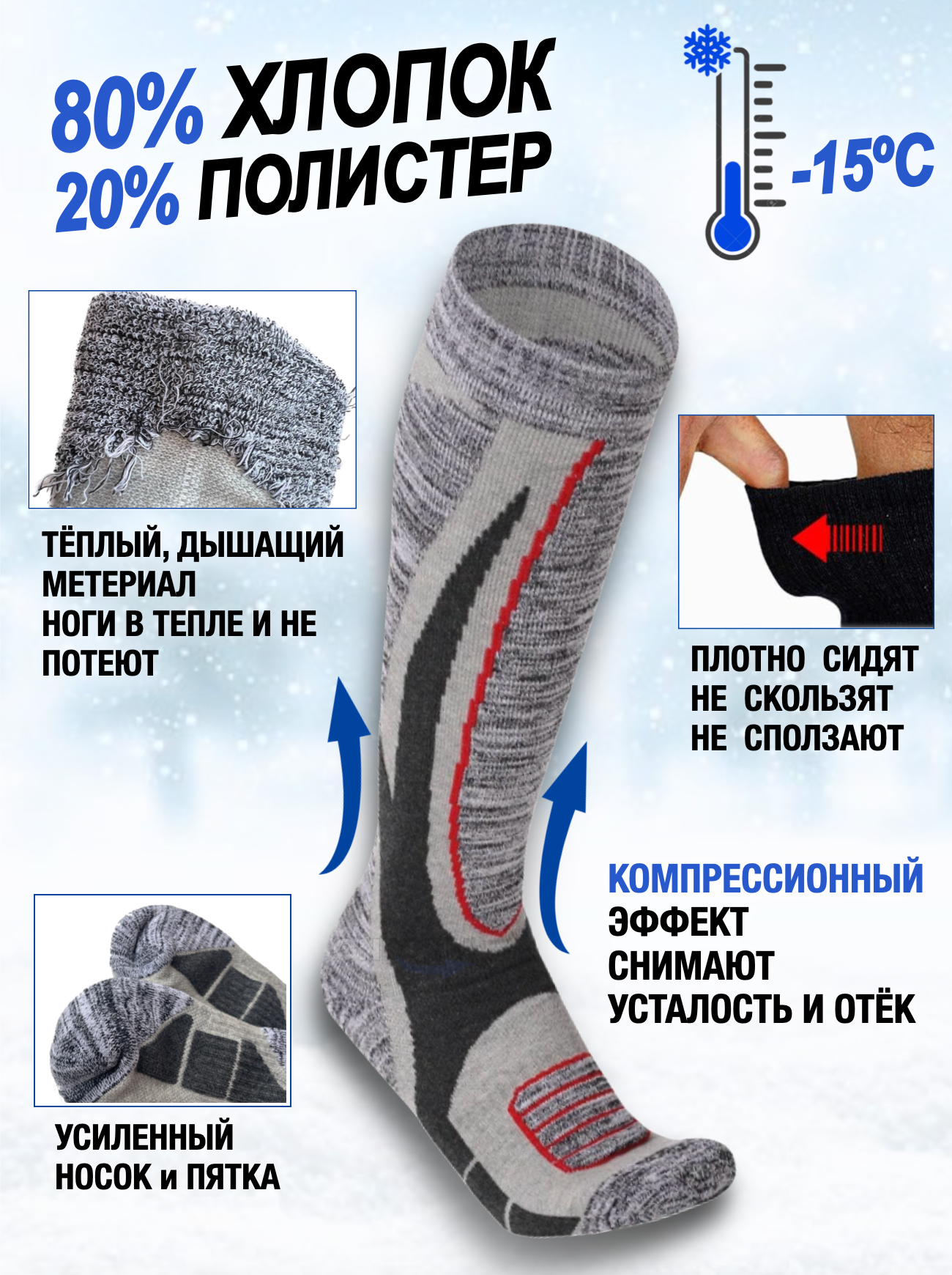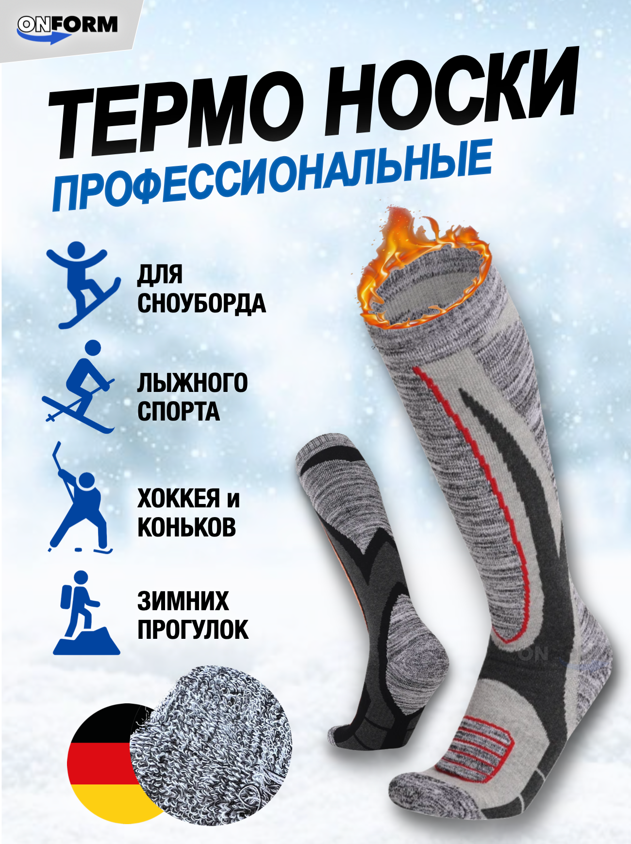 Термоноски ONFORM Термо гольфы, 2 уп., размер L, серый/красный интересное: