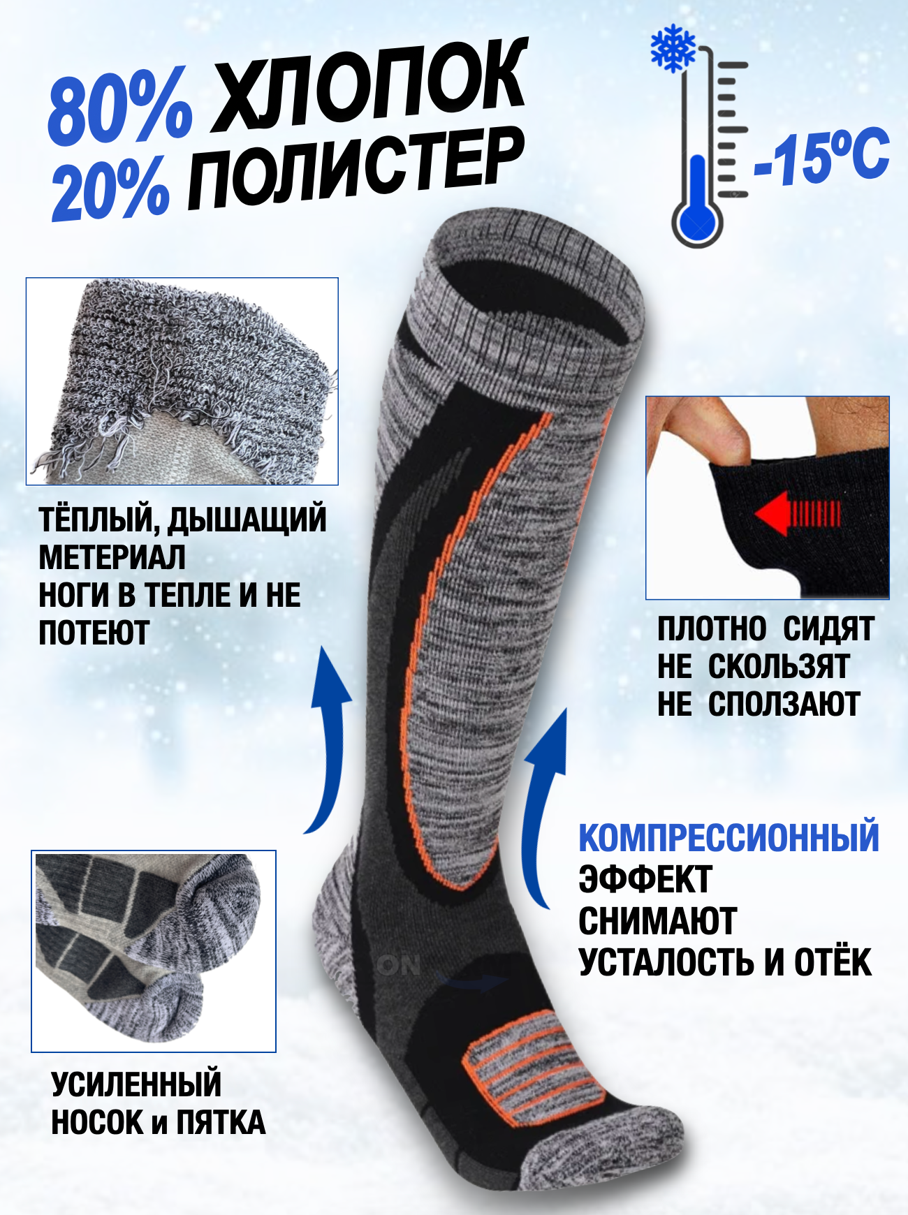 Термоноски ONFORM Термо гольфы, 2 уп., размер M, серый/оранжевый интересное: