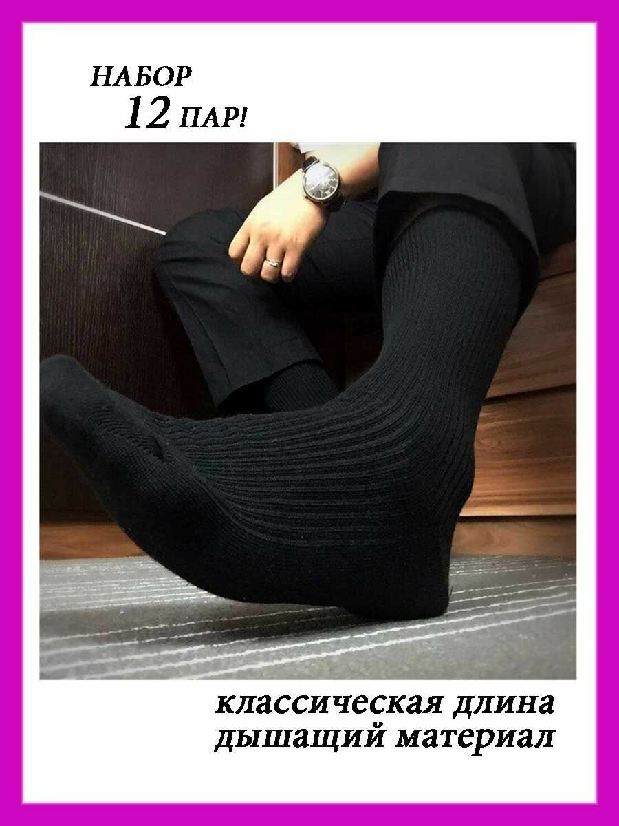 Носки НиК носки мужские хлопковые, комплект, 12 пар, размер 23, черный
