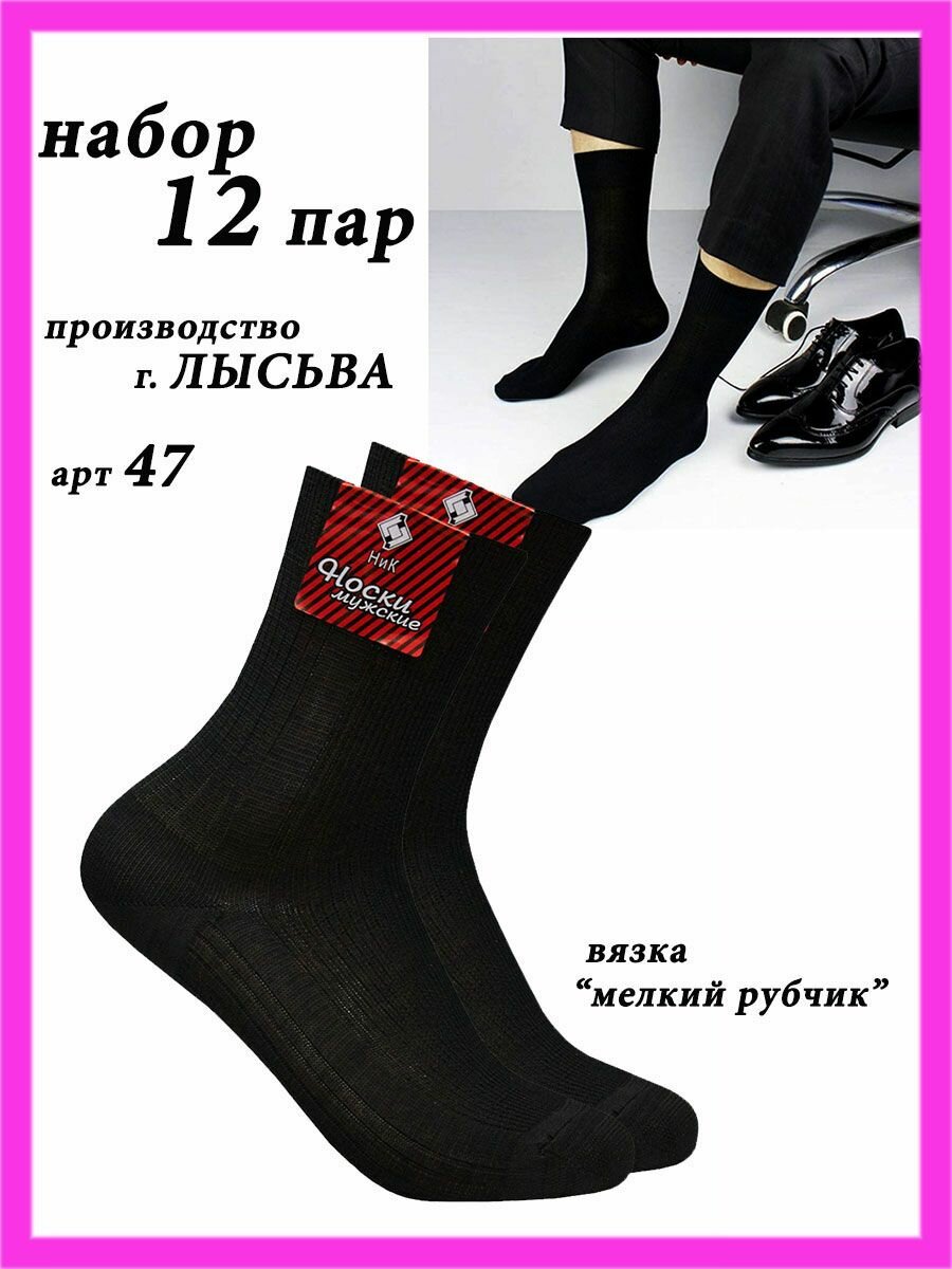 Носки НиК носки мужские хлопковые, комплект, 12 пар, размер 29, черный
