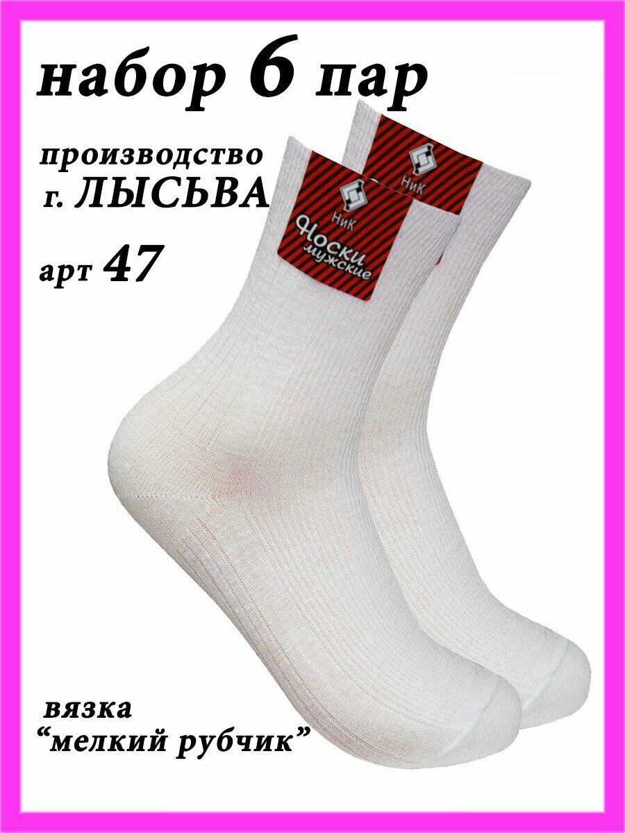 Носки НиК носки мужские хлопковые, комплект, 6 пар, размер 25, белый