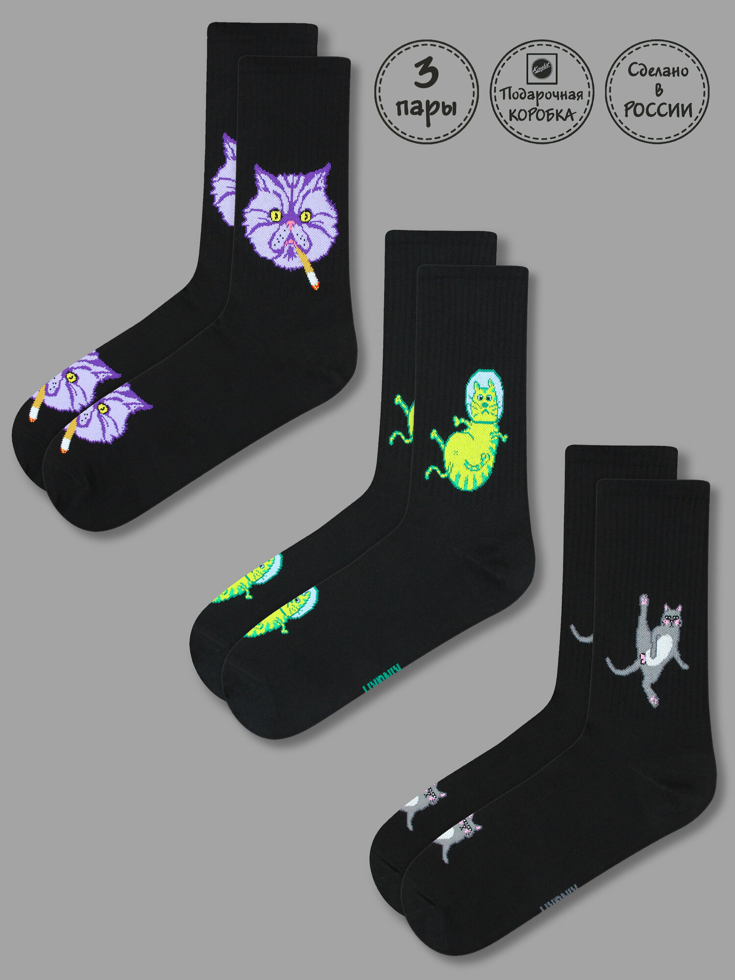 Носки Kingkit, комплект, 3 пары, размер 36-41, мультиколор