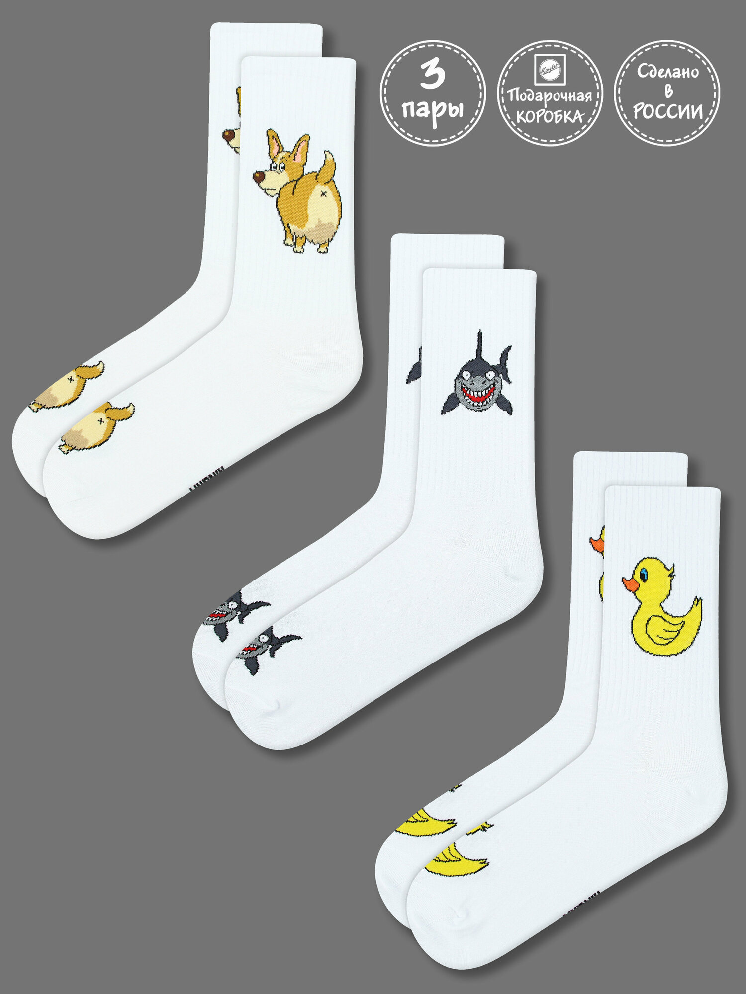 Носки Kingkit, комплект, 3 пары, размер 41-45, белый, мультиколор