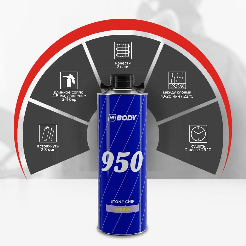 Аэрозольный антигравий под пистолет HB BODY 950 серый, аэрозоль, объём 1 л / Антикоррозийный состав / Антикор