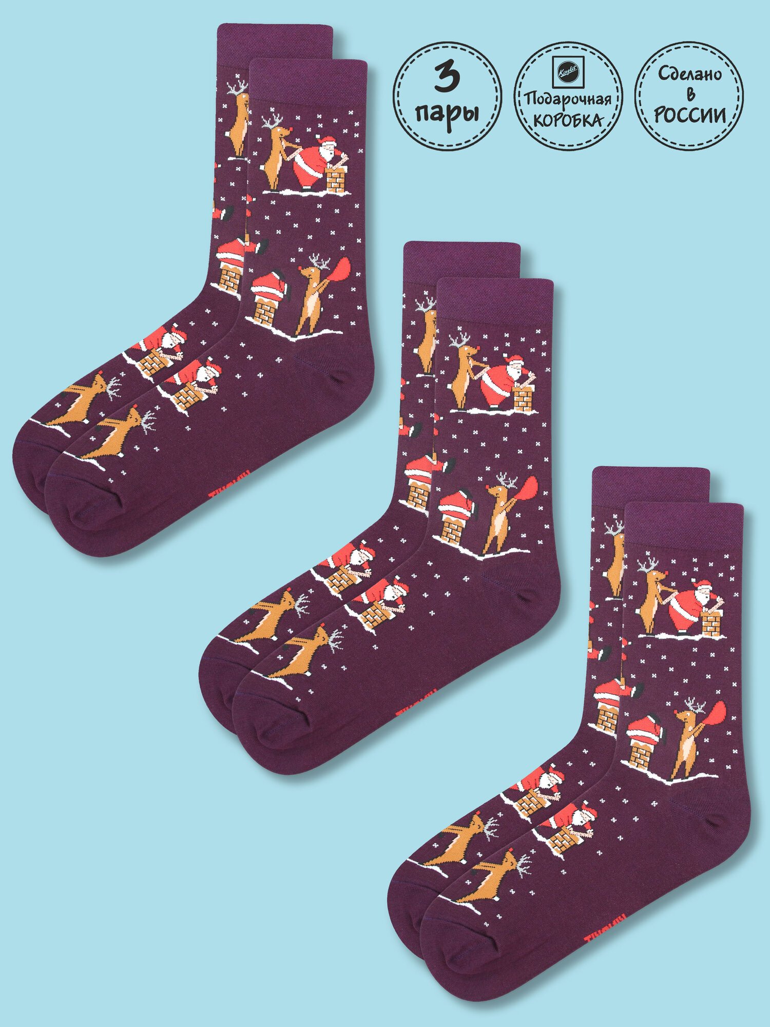 Купить Носки Kingkit, комплект, 3 пары, размер 36-41, бордовый