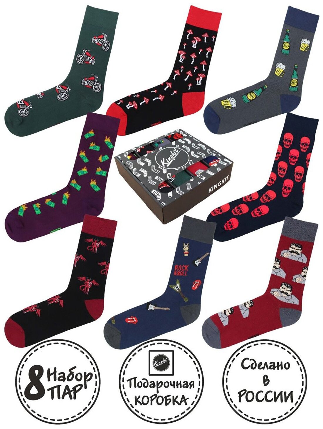 Носки Kingkit, комплект, 8 пар, размер 41-45, мультиколор