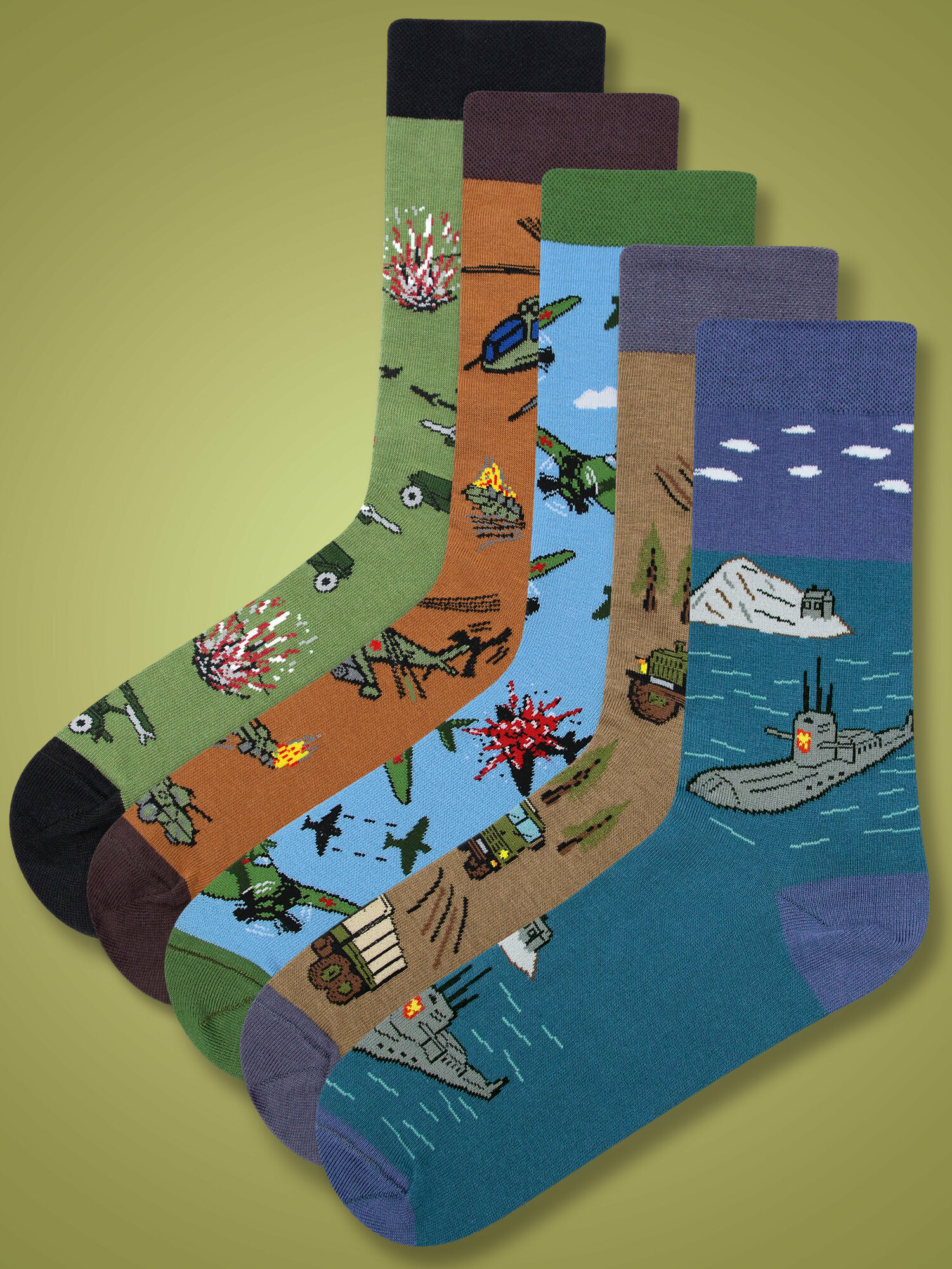Носки Kingkit, комплект, 5 пар, размер 36-41, белый, хаки, зеленый