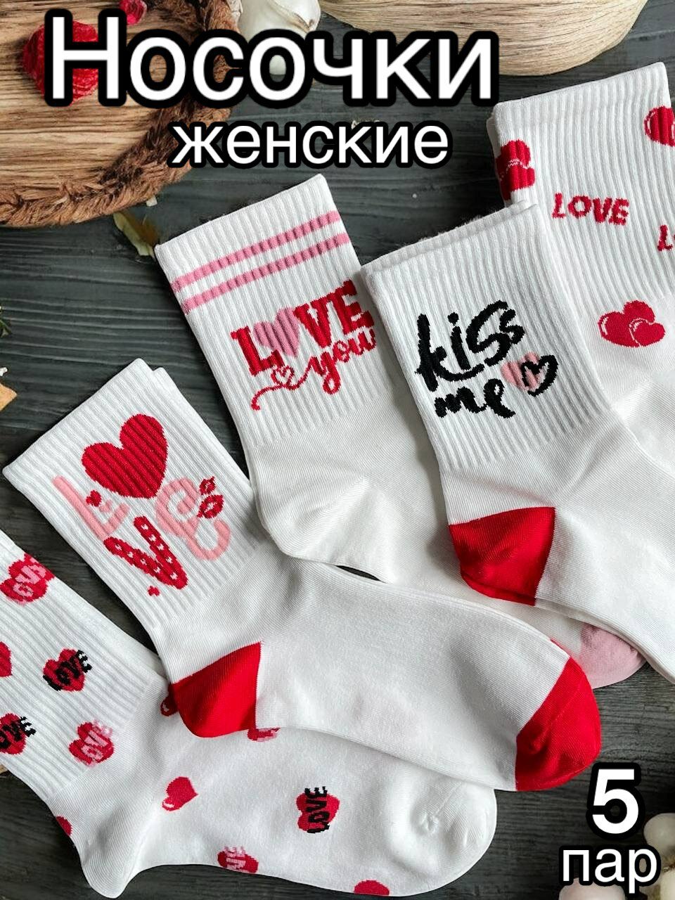 Носки Turkan, комплект, 5 пар, размер 36-41, бело-красный интересное: