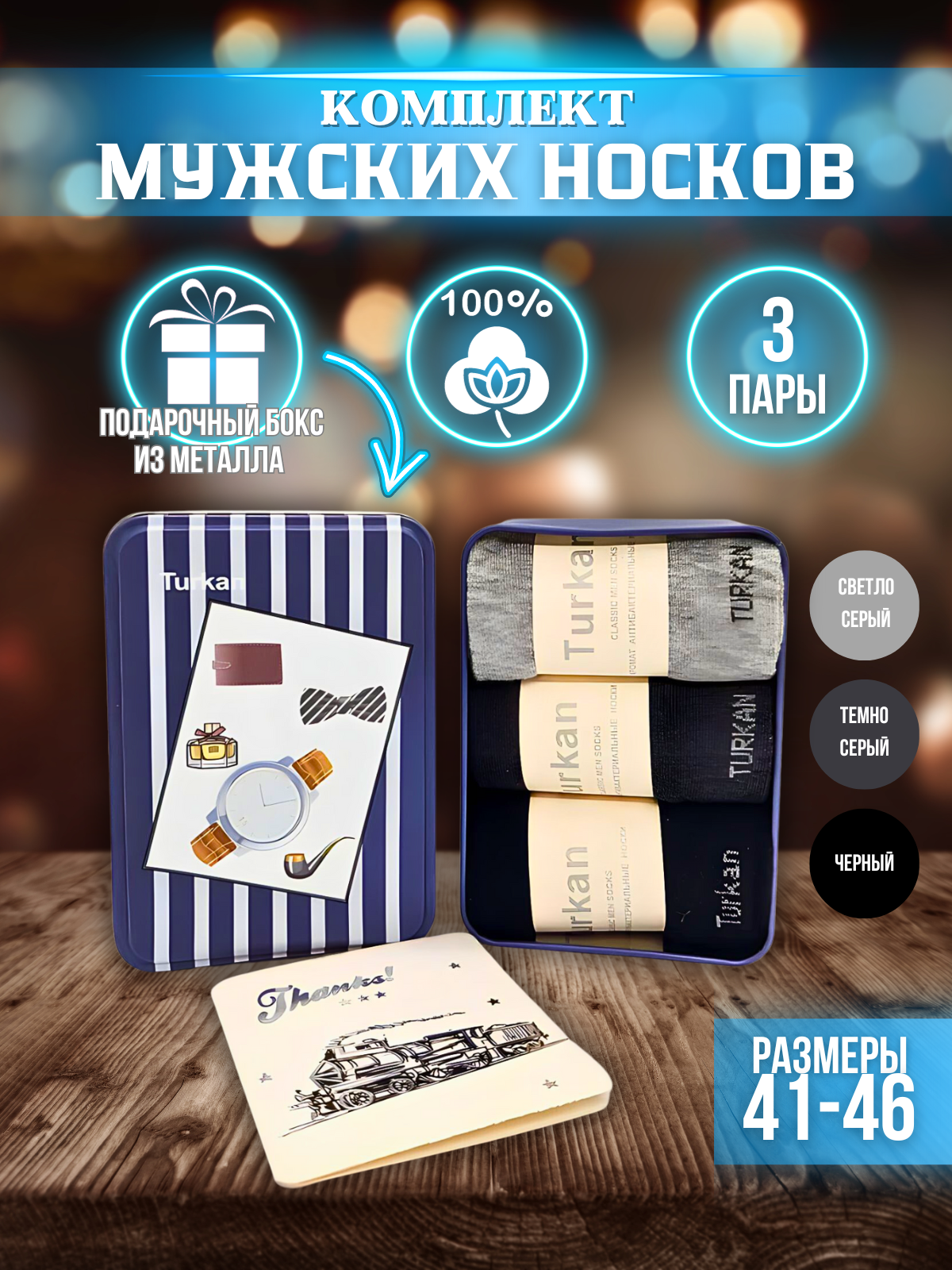 Носки Turkan, комплект, 3 пары, размер 41-46, темно-синий интересное: