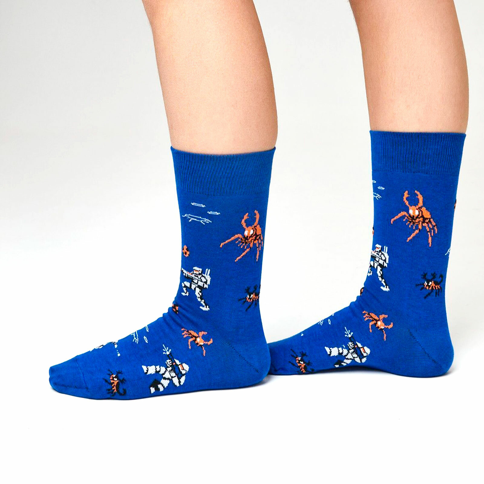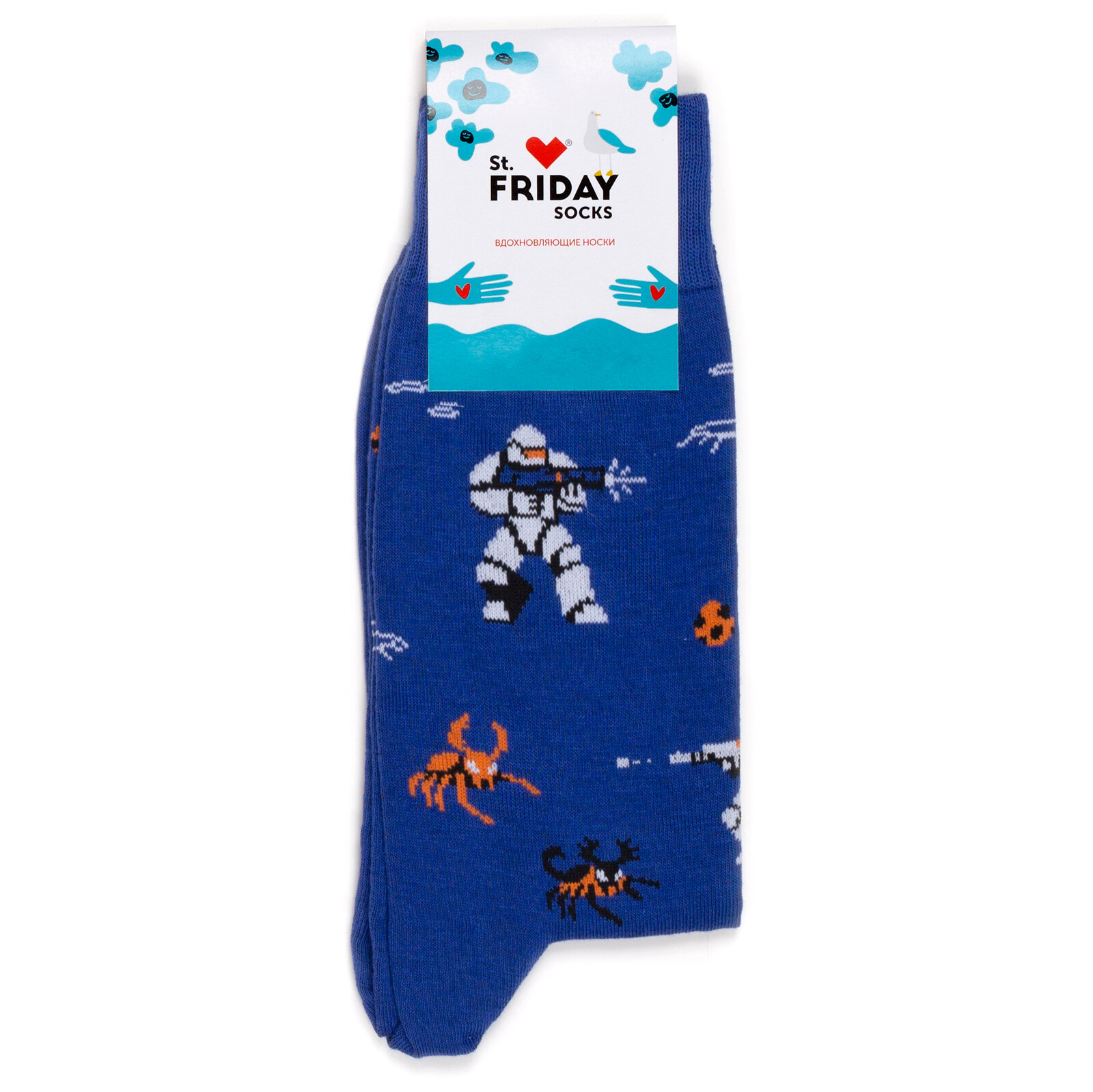 СохранитьНоски St. Friday Носки с рисунками St.Friday Socks Звездный десант, размер 42-46, синий, оранжевый, белый интересное: