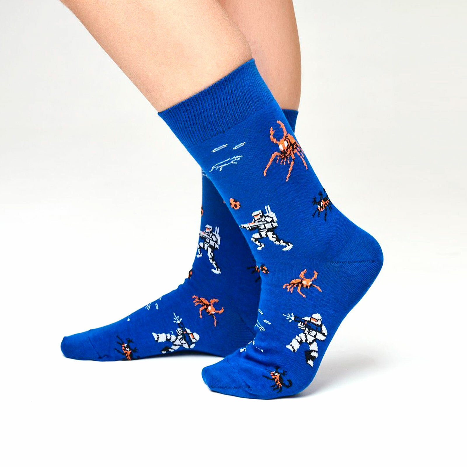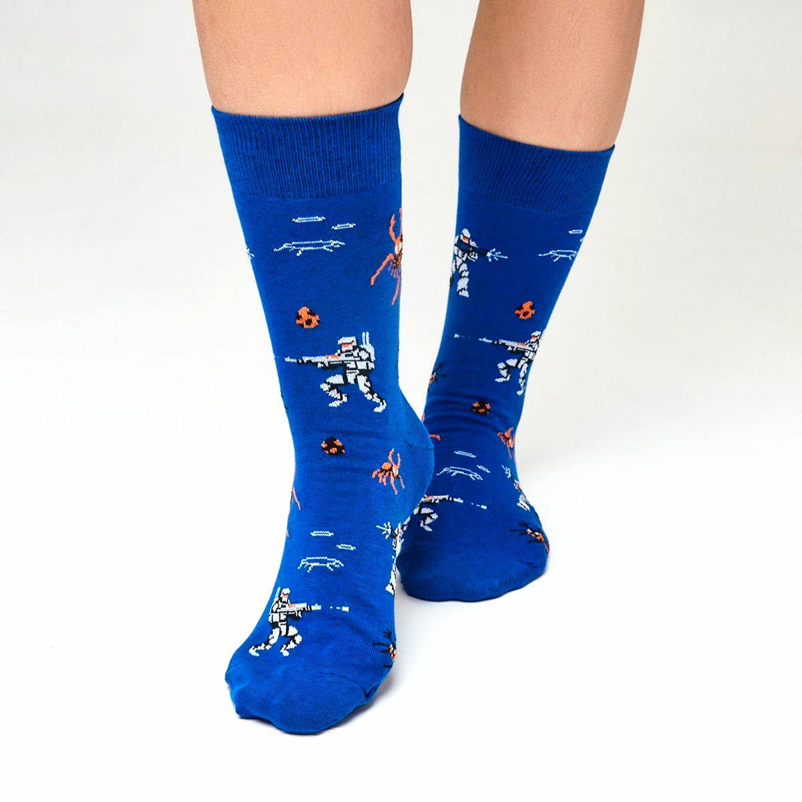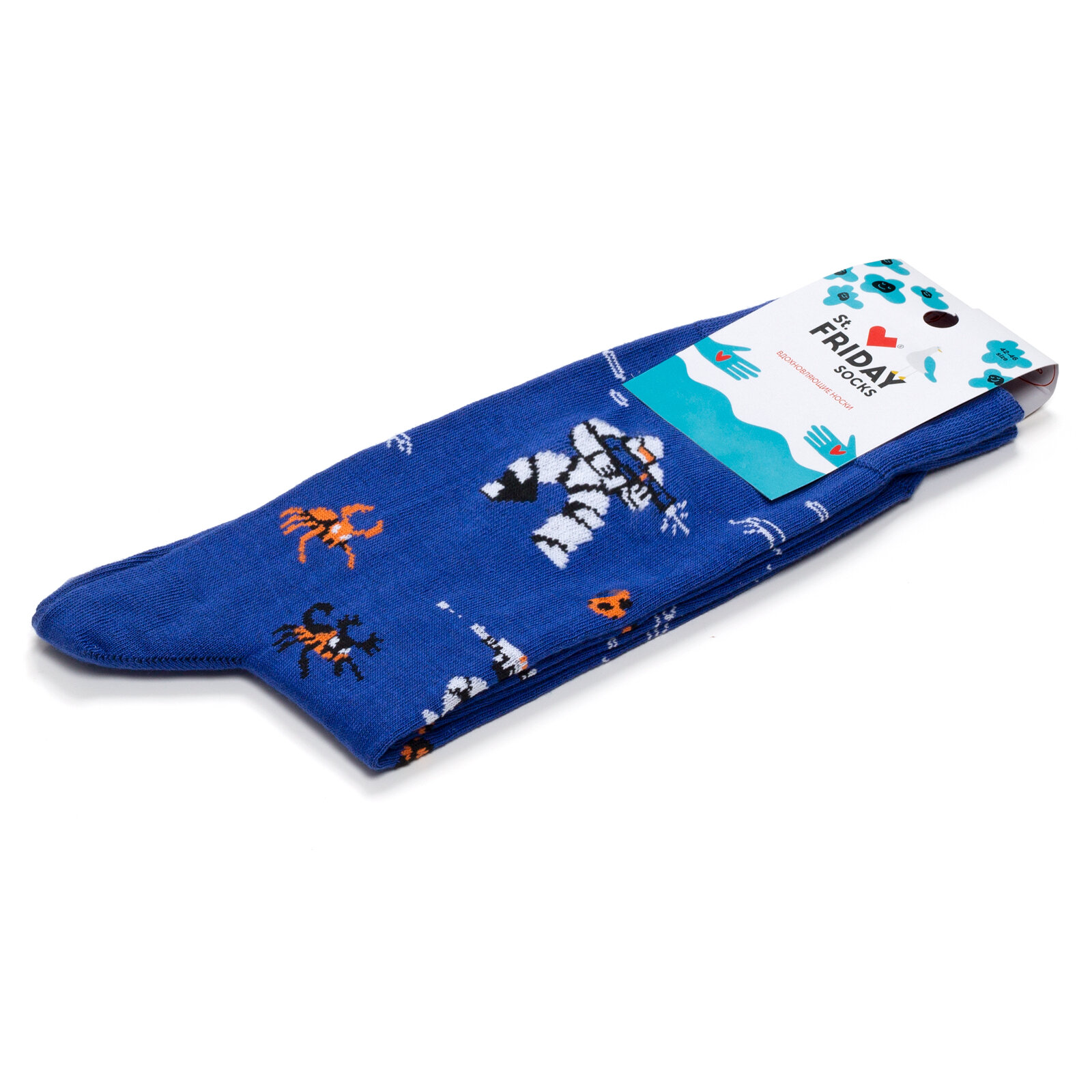 Носки St. Friday Носки с рисунками St.Friday Socks Звездный десант, размер 42-46, синий, оранжевый, белый