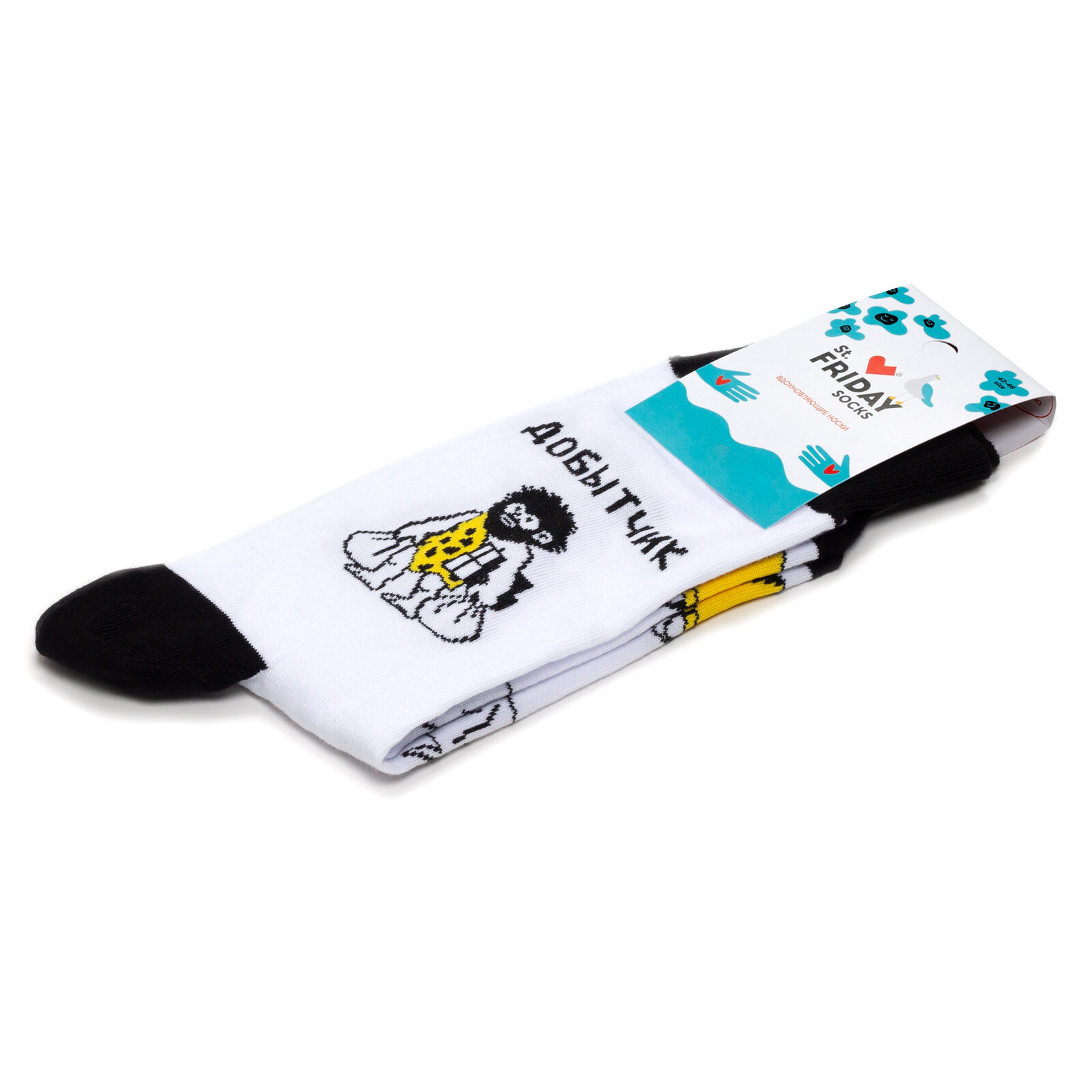 Носки St. Friday Носки с рисунками St.Friday Socks Добытчик, размер 42-46, черный, желтый, белый