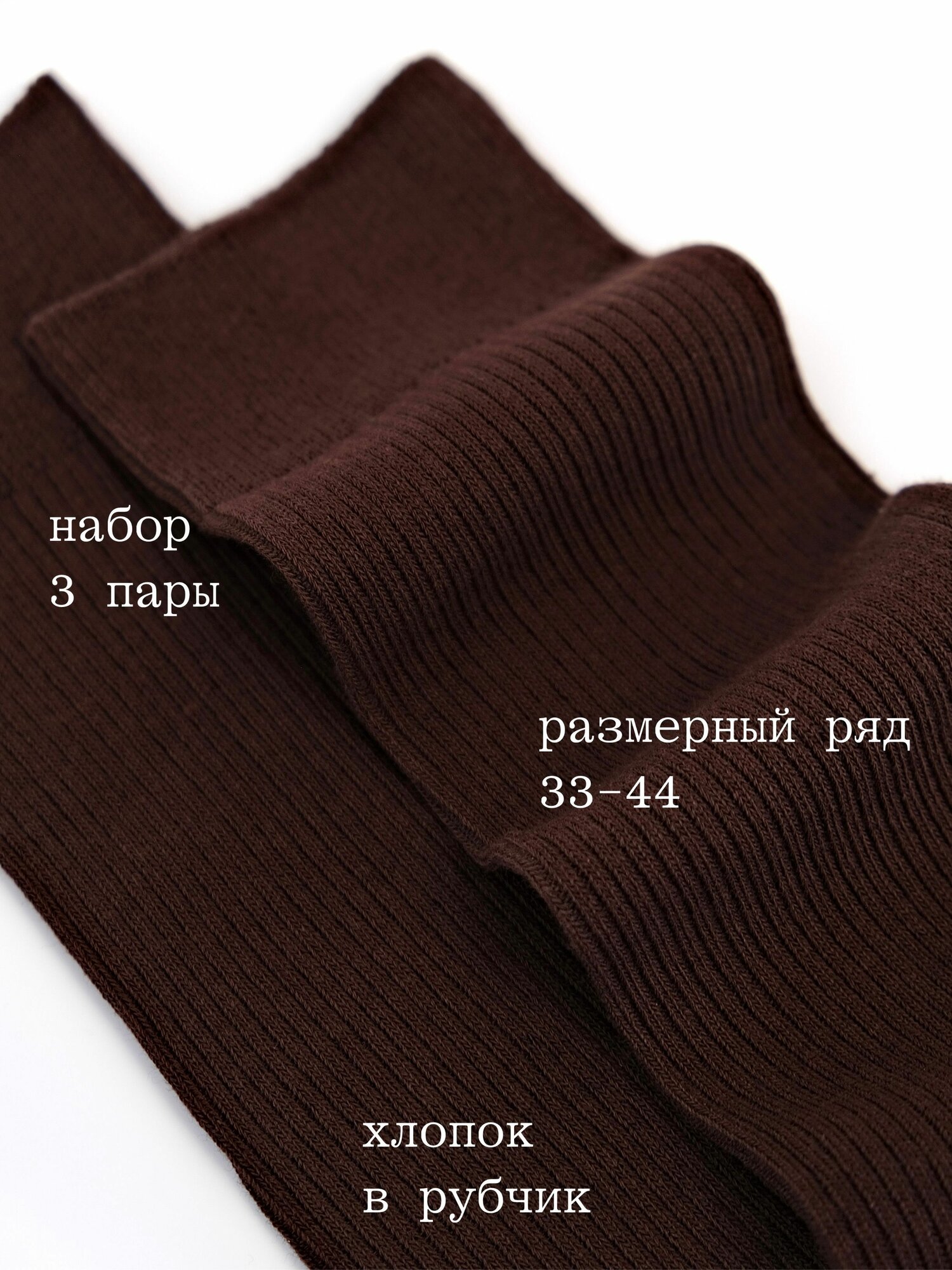 Носки TENDEN Осень-зима 2024, комплект, 3 пары, размер 33-35, коричневый